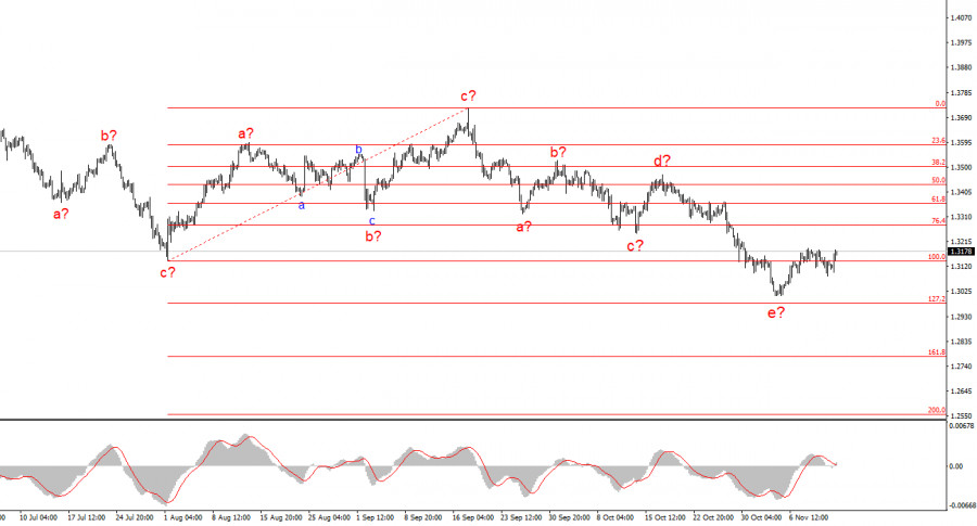 Исходя из проведенного анализа EUR/USD, я делаю вывод, что инструмент продолжает построение повышательного участка тренда. В последние несколько месяцев рынок взял паузу, но политика Дональда Трампа и ФРС остаются весомыми факторами падения американской валюты в будущем. Цели текущего участка тренда могут простираться вплоть до 25-й фигуры. В данное время продолжается построение коррекционной волны 4, которая принимает очень сложный и протяженный вид. Последняя ее внутренняя структура – a-b-c-d-e близка к своему завершению или завершена. Следовательно, сейчас я вновь рассматриваю покупки с целями, расположенными около 19-й фигуры. Волновая картина по GBP/USD: