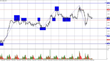 На часовом графике пара GBP/USD в среду выполнила сначала падение, затем рост. В данное время британец выполнил закрепление над зоной 1,3352 – 1,3362. Отбой котировок от этой зоны сегодня позволит трейдерам ожидать новый рост в направлении уровня 1,3425. Закрепление пары под зоной 1,3352 – 1,3362 сработает в пользу доллара США и продолжения падения в направлении уровня Фибо 61,8% – 1,3294.