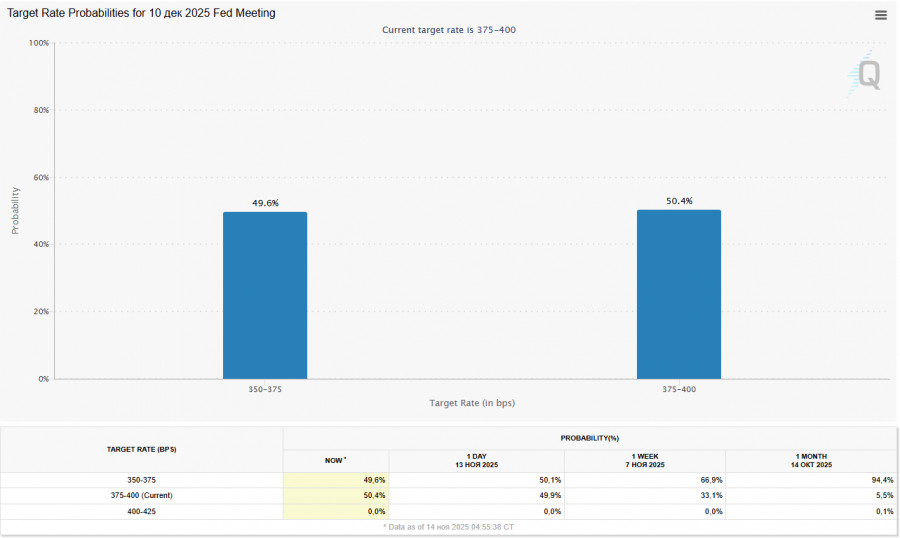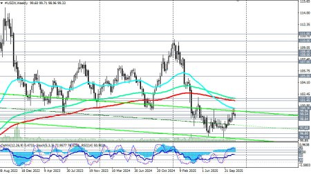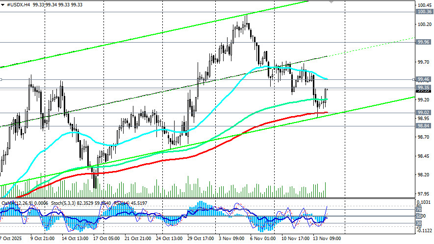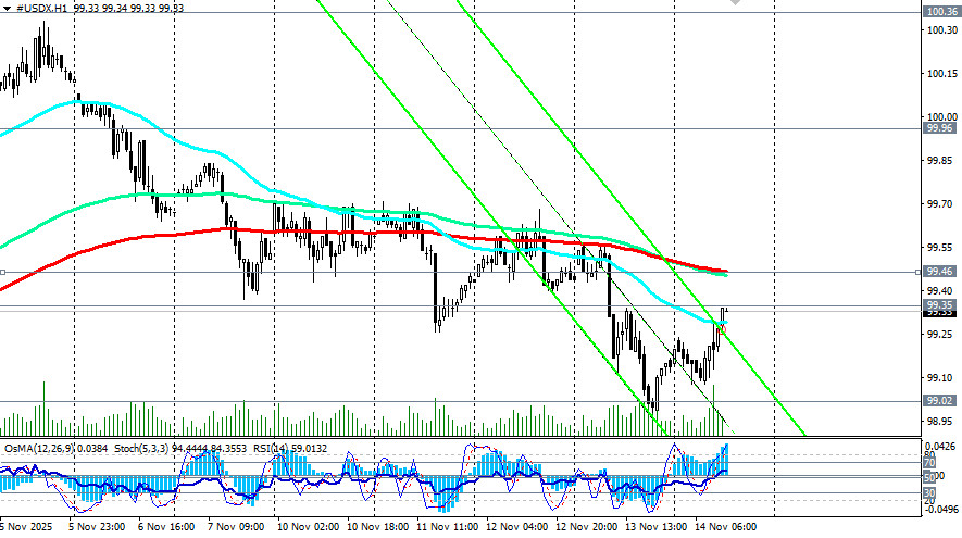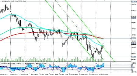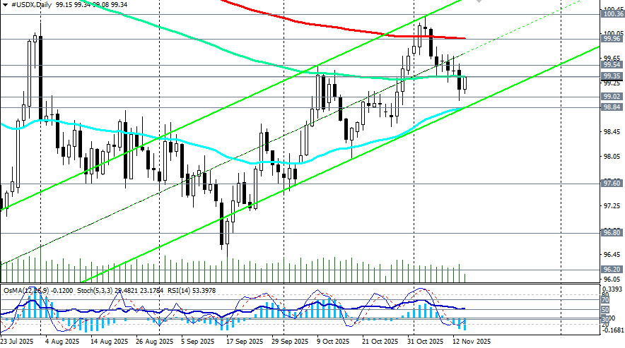 В начале американской торговой сессии пятницы доллар США торгуется на отметке 99.35 по индексу USDX, восстанавливаясь после известия о прекращении правительственного кризиса («шатдауна»). Президент Соединенных Штатов Дональд Трамп утвердил бюджетный законопроект 12 ноября, обеспечив продолжение функционирования государственных учреждений вплоть до конца января следующего года. Благодаря этому соглашению сотрудники госучреждений сохранят рабочие места и получат выплаты задержанных зарплат. Инвесторов теперь интересует восстановление публикации важнейших экономических показателей, хотя первая публикация данных рынка труда ограничится лишь результатами за ноябрь. Акцент в оценке перспектив динамики доллара, похоже, вновь смещается на решения центрального банка США. Несмотря на повышение вероятности остановки «мягкого» подхода ФРС в декабре, высказанного некоторыми членами совета директоров, администрация Трампа представлена Стивеном Мироном, активно выступающим за значительное ослабление условий кредитования. Однако большинство представителей ведомства остаются консервативнее и считают необходимым убедиться в замедлении инфляционных процессов, прежде чем менять политику. Примечательно, что некоторые прежние сторонники снижения ставок теперь поддерживают ужесточение, включая главу ФРБ Бостона Сьюзан Коллинз. Отдельно стоит отметить заявление главы ФРБ Атланты Рафаэля Бостика о предстоящей отставке в следующем месяце, открывающей перед президентом Дональдом Трампом возможность предложить своего кандидата, вероятно склонного к мягкой денежно-кредитной политике. А пока что рынок оценивает шансы сохранения текущих значений процентных ставок в декабре примерно в 50% против 63% еще 2 дня назад, 67% на прошлой неделе и 95% месяц назад. Техническая картина Оттолкнувшись в четверг от поддержки вблизи отметки 99.00, сегодня фьючерсы на индекс доллара USDX пытаются продолжить восходящую динамику. Однако для дальнейшего роста цене необходимо будет сначала преодолеть зону сопротивления вокруг уровней 99.35 (144-периодная скользящая средняя на дневном графике) и 99.46 (200-периодная скользящая средняя на 1-часовом графике). Для окончательного же прорыва в зону среднесрочного бычьего рынка цене необходимо закрепиться в зоне выше ключевых уровней сопротивления 99.96 (200-периодная скользящая средняя на дневном графике), 100.00, 100.36 (50-периодная скользящая средняя на недельном графике). Пробой же зоны поддержки вокруг уровней 99.02 (200-периодная скользящая средняя на 4-часовом графике), 98.84 (50-периодная скользящая средняя и нижняя граница восходящего канала на дневном графике) и дальнейшее снижение ухудшат перспективы цены, вернув ее в зону среднесрочного и долгосрочного медвежьих рынков. Что на сегодня? Ввиду отсутствия сегодня важнейших и запланированных ранее публикаций (данные по динамике розничных продаж и индекс PPI) внимание участников рынка смещается на выступления ряда представителей руководства ФРС, чьи высказывания могут повлиять на настроения инвесторов и стать ориентирами для формирования ожиданий по дальнейшей динамике американской валюты. Заключение Влияние на доллар заявлений представителей ФРС из-за отсутствия макростатистики, вероятно, все же будет ограниченным. Дальнейшее развитие событий вокруг доллара будет зав