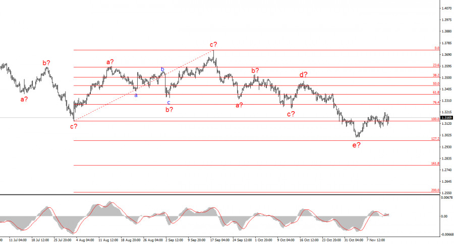 Исходя из проведенного анализа EUR/USD, я делаю вывод, что инструмент продолжает построение повышательного участка тренда. В последние несколько месяцев рынок взял паузу, но политика Дональда Трампа и ФРС остаются весомыми факторами падения американской валюты в будущем. Цели текущего участка тренда могут простираться вплоть до 25-й фигуры. В данное время продолжается построение коррекционной волны 4, которая принимает очень сложный и протяженный вид. Последняя ее внутренняя структура – a-b-c-d-e близка к своему завершению или завершена. Следовательно, сейчас я вновь рассматриваю покупки с целями, расположенными около 19-й фигуры.Волновая картина по GBP/USD: