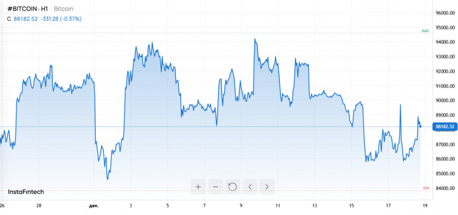 Биткоин 17 декабря торговался на уровне $87 822, но к следующему дню цена снизилась до $86 065 – падение почти на 2%. Несмотря на это, институциональные инвесторы продолжают наращивать позиции.