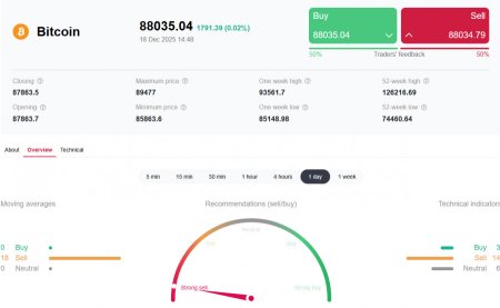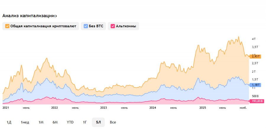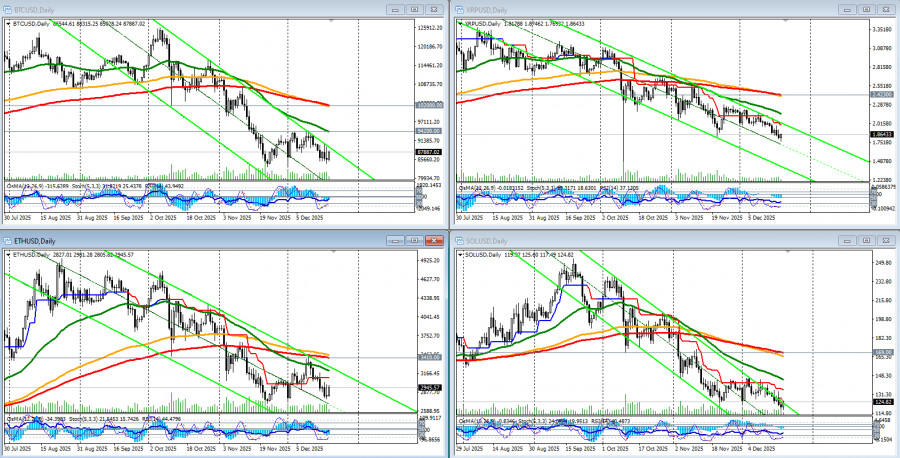*) см. также: Торговые индикаторы InstaForex по BTC[/i] Доллар США остается в уязвимом положении. Итоги декабрьского заседания ФРС стали определяющим фактором для американской валюты на ближайшие недели или даже месяцы, отметили мы в нашем сегодняшнем обзоре «Доллар: завершая крайне волатильную неделю». Между тем, опубликованные в четверг американские индексы CPI немного «вдохнули» позитива в подавленные, в основном, настроения участников крипторынка.Так называемый, индекс «страха и жадности» инвесторов вчера сместился в нейтральную зону и к отметке 47 после публикации американских CPI, хотя до этой публикации оставался в зоне «страха» и вблизи отметки 40 (из 100). Однако сегодня индекс вновь вернулся в «зону «страха», что говорит о сохраняющейся осторожности инвесторов. Она, по большей части, сохраняется, в то время как 4-й квартал стал поистине трагическим для многих инвесторов и покупателей биткойна, ставивших на его дальнейший рост. С начала октября и 4-го квартала цена биткоина потеряла около 30% к текущему моменту, опустившись к уровням вблизи 88000.00. Пик цены пришелся на начало октября и на отметки выше 126000.00. Если считать с этого уровня, то снижение составило 43%, а с начала года – примерно 7%. Сегодня котировки основных криптовалют, в том числе биткоина, растут, корректируясь на фоне позитивных новостей из США. Так, на момент публикации данной статьи, пара BTC/USD торговалась вблизи отметки 88000.00, укрепившись на 2,7% с открытия сегодняшнего торгового дня. Дополнительным стимулом и драйвером восходящей коррекции в динамике основных криптовалют стала новость о том, что в США заявили о подготовке к рассмотрению закона о регулировании крипторынка CLARITY в январе. Стало известно, что Сенат утвердил Майка Селига на пост главы Комиссии по товарным фьючерсам (CFTC) и Трэвиса Хилла на пост главы Федеральной корпорации по страхованию вкладов (FDIC). CFTC готовится стать наряду с SEC одним из ключевых регуляторов рынка криптовалют, и оба учреждения играют в этом процессе важную роль. Ранее, как мы помним, Трамп обещал сделать США «криптовалютным раем». По крайней мере, движение в сторону прозрачного регулирования рынка криптовалют продолжается, а это – позитивная новость для инвесторов. Тем не менее, несмотря на более слабые, чем ожидалось показатели американских CPI и новости из сферы крипторегулирования в США, до смены негативных настроений на крипторынке на позитивные еще пока далеко. Преобладает негативная динамика и сохраняющийся отток средств. Так, на текущий момент капитализация всего крипторынка составляет примерно 2,93 трлн долларов, что на 41% меньше рекордных 4,15 трлн в конце сентября, по данным TradingView. А это значит, что преимущественными пока что, несмотря на сегодняшний рост, остаются короткие позиции, в том числе и по паре BTC/USD (подробнее и сценарии динамики BTC/USD рассмотрим в нашем следующем обзоре - BTC/USD: сценарии динамики на 19.12.2025).*) см. также - ETH/USD: сценарии динамики на 19.12.2025[i]