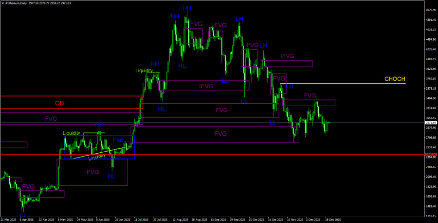 Торговые рекомендации по Эфиру(Ethereum) на 21 декабря по системе ICT.