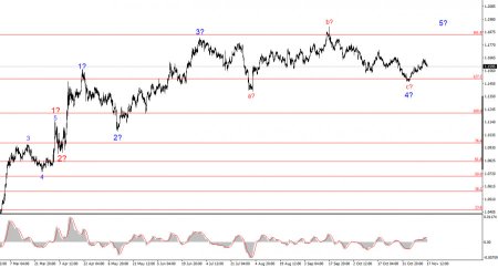 Курс инструмента EUR/USD в течение понедельника снизился на 20 базовых пунктов. Такое(по силе) снижение инструмента не значит ничего. Если бы рынок мог сегодня вообще не двигаться с места, он бы так и сделал. Амплитуда движений и активность участников рынка в последние недели были очень слабыми, а в те дни, когда новостей нет никаких, чего ожидать? Поэтому я весьма спокойно отношусь к новому укрепления американской валюты. Безусловно, коррекционный набор волн, берущий свое начало 17 сентября, может принять еще более сложный и протяженный вид, потому что любая волновая структура в любой момент может это сделать. Однако напомню, что чем проще структура, тем проще с ней работать. Именно поэтому я стараюсь выделять на графиках простые трехволновые коррекционные и пятиволновые импульсные структуры. В данное время мы уже увидели сложную пятиволновую коррекцию, которая является частью простой трехволновой коррекции, которой быть вообще не должно было. Напомню, что новостной фон не был в последние месяцы прекрасным для валюты США, поэтому последнего снижения инструмента могло не случится, и никто бы не расстроился по этому поводу. Однако рынок продолжает раскачиваться из стороны в сторону, явно подготавливаясь к новому мощному движению. Какое это будет движение(учитывая текущий новостной фон), лично у меня сомнений нет.Общие выводы