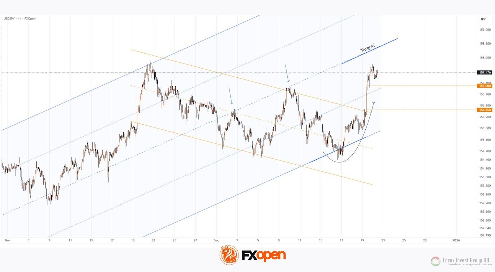 FxSignal 22-12-2025, 16:00 28 Аналитика, прогнозы валютного рынка15 декабря мы обращали внимание, что курс USD/JPY опускается к ключевой поддержке от нижней границы восходящего канала.