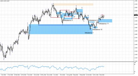 Пара EUR/USD начала коррекционный откат, и уже третий день подряд «штурмует» имбаланс 9. Напомню,