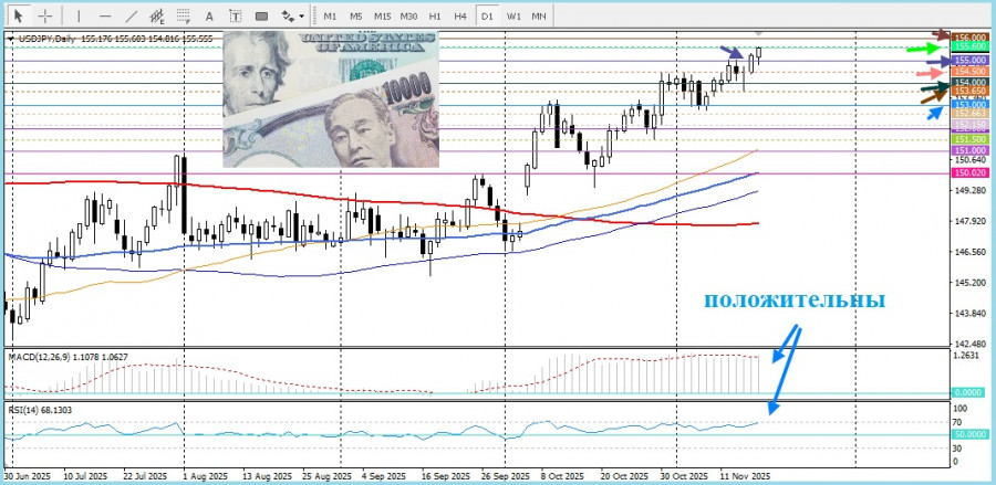На фоне этого, представители Федеральной резервной системы недавно подчеркнули необходимость осторожности при дальнейшем смягчении денежно-кредитной политики, так как текущие экономические данные остаются слабым основанием для снижения ставок. Эта позиция снизила ожидания рынка относительно возможного снижения ставки в декабре, поддерживая доллар США и валютную пару USD/JPY.
