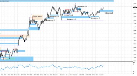 Пара EUR/USD все-таки оттолкнулась от зоны «бычьего» имбаланса 9, что дает трейдерам еще один