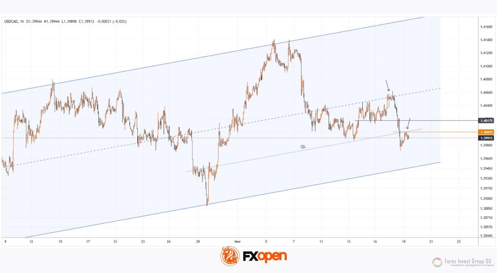 Колебания валютной пары USD/CAD сформировали этой осенью широкий восходящий канал, в этом контексте: