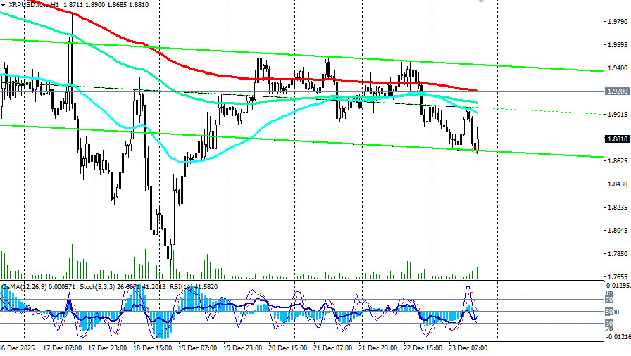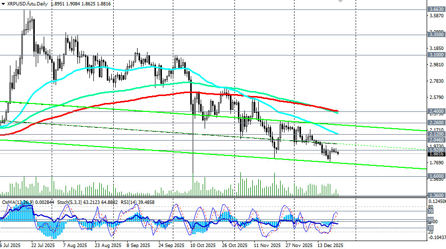 Несмотря на то, что индекс «страха и жадности» переместился сегодня в зону «жадности» (58 из 100), инвесторы продолжают выходить из рискованных активов крипторынка. В то же время, настроение на рынке может улучшиться на фоне растущей вероятности новых снижений процентной ставки ФРС в 2026 году. Не исключено, что появление новых сигналов о предстоящих действиях ФРС может стать импульсом для движения котировок, предположили мы в нашем сегодняшнем обзоре «Крипторынок: в рождественскую неделю». Опубликованные сегодня в первой половине американской торговой сессии макро данные США, смогли немного «раскачать» инвесторов и повысить на некоторое время волатильность рынка. В то же время, активность трейдеров остается невысокой, а объемы торгов низкими накануне рождественских и новогодних праздников (см. также наш обзор «Доллар: последние важные данные недели и месяца»). На рынке криптовалют пока что преобладает негативная динамика. Так, один из популярных альткоинов Риппл сегодня в паре с долларом достиг нового 4-дневного минимума вблизи 1.8625. В то же время, XRP/USD, несмотря на текущее снижение, продолжает торговаться в зоне долгосрочного бычьего рынка, значительно выше ключевых уровней поддержки 1.6000 и 1.3600 (ЕМА144 и ЕМА200 на недельном графике), что поддерживает актуальность долгосрочных длинных позиций. Пробой краткосрочного уровня сопротивления 1.9200 (ЕМА200 на 1-часовом графике) может стать сигналом для возобновления длинных покупок. Однако, на пути к зоне ключевого сопротивления 2.4000 (ЕМА200 и ЕМА144 на дневном графике) цене необходимо будет преодолеть зону сопротивления 2.0460 (ЕМА200 на 4-часовом графике) – 2.1200 (ЕМА50 на дневном графике), вблизи которой возможен отбой и возобновление снижения. Пробой же ключевого уровня сопротивления 2.4000 вернет цену в зону среднесрочного бычьего рынка, создав предпосылки для дальнейшего роста в сторону рекордных максимумов, зафиксированных в июле выше отметки 3.6600 с промежуточными целями на локальных уровнях сопротивления 3.1000, 3.3500, 3.6000. В основном же сценарии последовательный пробой сегодняшнего минимума 1.8625 и локального уровня поддержки 1.7900 может спровоцировать возобновление снижения и более глубокую коррекцию в сторону ключевых уровней поддержки 1.6000, 1.3600, отделяющих долгосрочный бычий рынок XRP/USD от медвежьего. открыть торговый счет + зарегистрироваться в системе копирования сигналов + инвестировать в ПАММ-системеМатериал предоставлен компанией InstaForex - www.instaforex.com