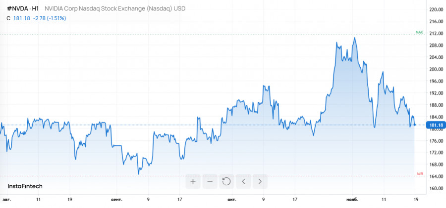 Среда началась с осторожного подъема американских фьючерсов, после того как мировые рынки завершили уже четвертую сессию подряд в минусе. Центром внимания инвесторов стал предстоящий квартальный отчет Nvidia – ключевое событие, способное задать направление всему сектору искусственного интеллекта. Финансовые и технологические гиганты в ожидании цифр, которые могут изменить правила игры.Во вторник основные американские фондовые индексы оказались под давлением. Dow Jones потерял 499 пунктов, или 1,07%, упав до отметки 46 091,74. S&P 500 просел на 0,83% до 6 617,32, а технологический Nasdaq Composite рухнул сразу на 1,21% – до 22 432,85. Индекс страха и жадности от CNN остался в зоне «крайнего страха», зафиксировав уровень 11,3. Это говорит о серьезном опасении инвесторов по поводу дальнейшей динамики рынков.Не отставали и азиатские биржи: японский индекс Nikkei 225 упал на 0,3%, в то время как гонконгский Hang Seng потерял 0,4%. На этом фоне биткойн краткосрочно падал ниже $90 000, после чего частично восстановился до уровня около $91 400.Тон рынку задала новость о многомиллиардной сделке между Microsoft, Nvidia и стартапом Anthropic. Согласно соглашению, компании инвестируют в совокупности $15 млрд в развитие стартапа, в обмен на его обязательства приобрести на $30 млрд облачных вычислительных мощностей от Microsoft Azure. Однако, в отличие от предыдущих ИИ-сделок, столь масштабная инвестиционная инициатива не вызвала ожидаемого роста акций.Генри Аллен, макростратег Deutsche Bank, заявил изданию Barron's: «В отличие от нескольких недавних соглашений в сфере ИИ, которые вызвали немедленный рост цен, не было значительного движения акций Nvidia или Microsoft после этой новости. Это указывает на заметный сдвиг в сторону более пессимистичных настроений за последние недели».Инвесторы с замиранием сердца ждут отчета Nvidia по итогам третьего квартала. Аналитики прогнозируют прибыль в размере $1,25 на акцию и выручку $54,9 млрд, что предполагает рост на 54% и 56% соответственно в годовом выражении. При этом опционы на акции Nvidia указывают на возможное колебание котировок в пределах 7% в любую сторону. Это эквивалент более $300 млрд изменения рыночной капитализации – событие, способное вызвать бурную реакцию на фондовом рынке.В среду также публикуются отчеты крупных сетей розничной торговли, которые дадут представление о потребительских тратах перед началом праздничного сезона. Это особенно важно на фоне задержек со стороны правительства в публикации макроэкономической статистики из-за недавней временной остановки его работы.Финансовые рынки входят в фазу неопределенности: тревожность из-за переоцененности акций, масштабные инвестиции в ИИ, нестабильность крипторынка и приближающийся сезон праздничных покупок – все это создает мощную турбулентность на рынках. Однако именно в нестабильности кроются возможности.Для трейдеров такие рыночные условия – шанс заработать как на росте, так и на падении активов. Например, динамика акций Nvidia после публикации отчета может обеспечить хорошую волатильность для краткосрочных сделок. Аналогично, валютные и фондовые инструменты, реагирующие на отчеты розничных компаний, предоставляют подходящие моменты входа в сделки.Все рассматриваемые инструменты – от акций Nvidia до индексов Nasdaq и S&P 500 – доступны для торговли на платформе InstaForex. Чтобы не упустить ни одной возможности, трейдерам рекоменду