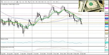 В то же время, ожидания дальнейшего смягчения денежно-кредитной политики Федеральной резервной системы и опасения относительно ее независимости — особенно на фоне давления со стороны президента США Дональда Трампа, который настаивает на снижении ставок — оказывают давление на доллар США. В результате индекс доллара (DXY) опустился до уровня, которого не было с начала октября,