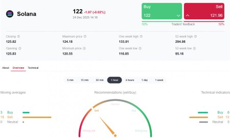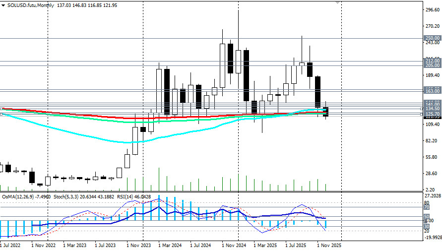 Предстоящий 2026 год станет для биткоина периодом повышенной нестабильности вследствие глобальных экономических факторов и политического риска, отметили мы в нашем сегодняшнем обзоре «Крипторынок: на фоне снижения ликвидности в предпраздничные дни». Отсутствие устойчивого направления движения цен усложняет перспективы предсказуемого развития цифрового актива. Стоимость первой криптовалюты значительно сократилась, упав примерно на 23% с начала октября, когда её максимальная цена достигала отметки в 126000.00 долларов. Сегодняшняя ситуация демонстрирует колебания цены возле уровня 87000.00, что составляет снижение почти на треть относительно годового пика.Между тем, многие эксперты крипторынка обращают внимание на альткоин Solana, который может стать новым лидером криптовалют. Солана (Solana) заслуженно получила прозвище «Bitcoin 3.0» благодаря своему революционному подходу к технологиям блокчейна. Эксперты отрасли поддерживают этот термин, подчеркивая фундаментальные различия между технологиями Solana и классического биткоина. Согласно их аргументам, биткоин удерживает лидирующую позицию исключительно благодаря своей исторической роли первопроходца и стойкому мифу о надежности. Однако, изучив ключевые показатели, они приходят к выводу, что технология Solana обладает рядом преимуществ перед биткоином. 1. Высокая степень децентрализации. Количество активных валидаторов у Solana превышает восемьсот, в отличие от менее сотни биткоин-механизмов. Именно такая большая база независимых валидаторов обеспечивает высокую устойчивость сети. 2. Масштабируемость и производительность. Скорость обработки транзакций Solana намного выше: система способна обрабатывать миллионы операций в секунду против десятков тысяч у биткоина. Среднее время подтверждения блока Solana измеряется секундами, в то время как биткоину требуются десятки минут. 3. Программируемые приложения и сервисы. Блокчейн Solana позволяет запускать сложные программы прямо внутри сети, поддерживая технологии smart contracts и обеспечивающие полную свободу разработки финансов. 4. Безопасность и защита инвестиций. Стоимость успешной атаки на сеть Solana гораздо выше, чем на биткоин, обеспечивая надежность вложений пользователей. За последние пару лет Solana зарекомендовал себя как один из самых быстрорастущих блокчейнов. Так, на пике интереса в начале 2025 года SOL сравнивали с Ethereum как платформу для смарт-контрактов. Сейчас Solana считается одним из основных кандидатов на запуск новых спотовых ETF в США. Таким образом, Solana, наряду с другими лидерами среди альткоинов (Ethereum, Ripple, BinanceCoin и др.) может стать если не заменой, то вполне оправданной альтернативой биткоину, который, по традиции, считается локомотивом всего крипторынка. Техническая картина Сегодня большинство криптовалют торгуются в узком диапазоне на фоне снижения ликвидности в предпраздничные дни. В то же время, даже несмотря на сдержанность краткосрочной динамики, эксперты крипторынка отмечают «фундамент для среднесрочного роста цен». Что касается пары SOL/USD, то сегодня она торгуется в диапазоне 120.00 – 123.00, двигаясь зоне медвежьего рынка, среднесрочного – ниже ключевого уровня сопротивления 166.00 (ЕМА200 на дневном графике) и долгосрочного – ниже ключевого уровня сопротивления 138.00 (ЕМА200 на недельном графике), тестируя также на пробой стратегический 