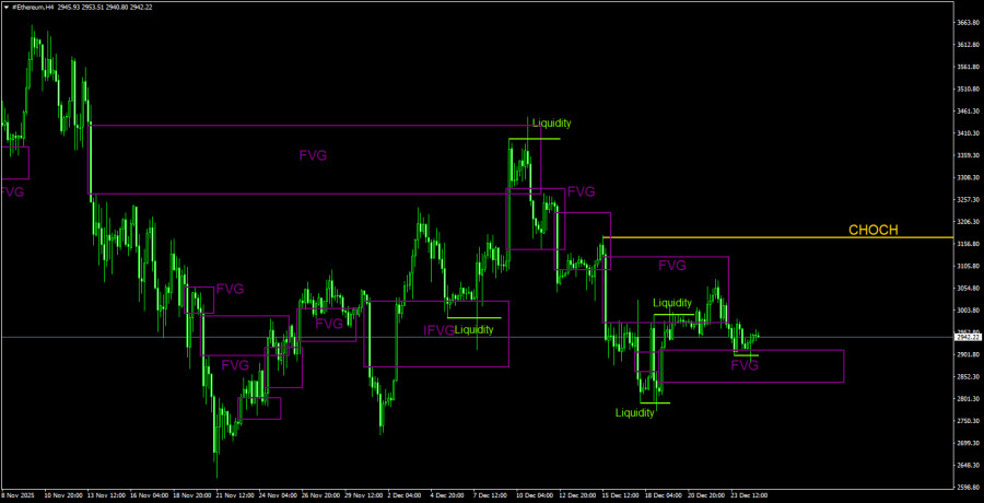 Торговые рекомендации по Эфиру(Ethereum) на 25 декабря по системе ICT.