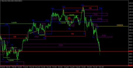 Торговые рекомендации по Биткоину(Bitcoin) на 7 ноября по системе ICT.