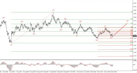 Волновая картина инструмента GBP/USD видоизменилась. Мы продолжаем иметь дело с повышательным, импульсным участком тренда, но его внутренняя волновая структура приобрела сложный вид. Понижательная коррекционная структура a-b-c-d-e в с в 4 носит вполне завершенный вид. Если это действительно так, я ожидаю, что основной участок тренда возобновит свое построение с первоначальными целями около 38 и 40 фигур. В краткосрочном плане можно ожидать построение волны 3 или с с целями, расположенными около отметок 1,3280 и 1,3360, что приравнивается к 76,4% и 61,8% по Фибоначчи.Основные принципы моего анализа: