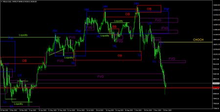 Торговые рекомендации по Биткоину(Bitcoin) на 23 ноября по системе ICT.