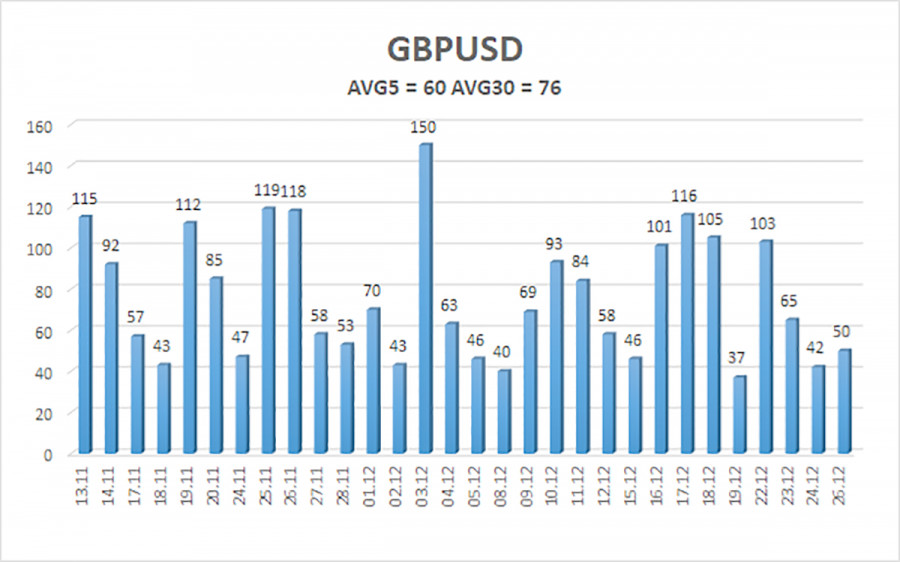 Валютная пара GBP/USD в пятницу вновь показала ультра-слабую волатильность, а в целом показатель волатильности падает уже несколько месяцев подряд. И дело не в новогодних праздниках. Рынок корректируется уже 6 месяцев, хотя по британскому фунту можно предположить, что коррекция завершена. На дневном ТФ отлично видно, что, в отличие от европейской валюты, британский фунт показал полноценную нисходящую коррекцию, состоящую из трех волн. Суммарно британская валюта откорректировалась примерно на 45%, что мы считаем слишком сильной коррекций. Напомним, что фундаментальный фон для евро и фунта практически совпадал в последние полгода. А выражался он в основном американскими событиями и новостями. Более сильное падение фунта мы можем объяснить лишь смягчением монетарной политики Банка Англии(в отличие от ЕЦБ) и неразберихой с бюджетом на 2026 год. Однако в данное время мы наблюдаем признаки возобновления восходящего тренда. Пара GBP/USD преодолела облако Ишимоку, а это достаточно важный и сильный сигнал. Таким образом, мы, как и прежде, ждем движения только на Север. Об американском фундаментальном фоне мы уже поговорили – ждать позитивных для доллара новостей в 2026 году вряд ли стоит. Хотим лишь добавить, что Трамп вполне мог сделать «ход конем», осознав безрезультативность своих действий в войне с ФРС. Напомним, что президент США требует от ФРС снижения ставок до предельно-минимальных значений, но рычагов влияния на Пауэлла и компанию у него нет. Зато есть – на Бюро статистики США после того, как Трамп поменял главу этой организации. Таким образом, теперь Бюро статистики вполне может выполнять указания из Белого дома. Для чего это нужно? Да все для того же – чтобы понизить ключевую ставку ФРС. «Не мытьем, так катанием». Если ФРС готова смягчать монетарную политику только при условии низкой инфляции и слабости рынка труда, значит нужно, чтобы рынок труда был слаб, а инфляция – падала. Что мы видим в данное время? Рынок труда слаб, а инфляция – падает. Таким образом, Трамп может создавать условия для ФРС для снижения ключевой ставки. Конечно, это лишь предположение, мы ни в коем случае не утверждаем, что последние макроэкономические данные – сфальсифицированы. Однако, согласитесь, такой вариант вполне возможен. Также следует напомнить, что спасать доллар от нового падения никто не собирается. Трампу нужен «дешевый» доллар, чтобы повысить уровни экспорта. Если американская валюта упадет до 1,5$, в Белом доме только откроют шампанское по этому поводу. Также нельзя не отметить, что Россия и Украина находятся на пути к перемирию, а это означает, что уровень геополитической напряженности может снизиться в ближайшие месяцы. Напомним, что доллар растет, когда геополитическая напряженность растет. Как видим, факторов для нового падения американской валюты – огромное количество. И все они – глобальные. Средняя волатильность пары GBP/USD за последние 5 торговых дней составляет 60 пунктов. Для пары фунт/доллар это значение является «средне-низким». В понедельник, 29 декабря, таким образом, мы ожидаем движения внутри диапазона, ограниченного уровнями 1,3435 и 1,3555. Старший канал линейной регрессии направлен вниз, но только из-за технической коррекции на старших ТФ. Индикатор CCI шесть раз заходил в область перепроданности за последние месяцы и сформировал множес