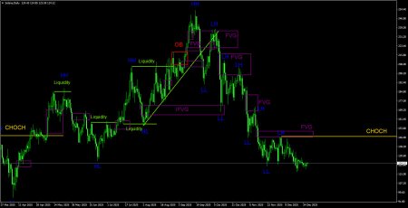 CHOCH – слом трендовой структуры. Liquidity – Ликвидность, Stop Loss трейдеров, которые маркет-мейкеры используют для набора своих позиций. FVG – Область ценовой неэффективности. Цена очень быстро проходит такие области, что указывает на полное отсутствие одной из сторон на рынке. В последствии цена имеет свойство возвращаться и получать реакцию от таких областей. IFVG – Инвертированная область ценовой неэффективности. После возврата к такой области, цена не получает от нее реакцию, а импульсно пробивает, а затем тестирует ее с другой стороны. OB – Ордер-блок. Свеча, на которой маркет-мейкер открывал позицию с целью забора ликвидности для формирования собственной позиции в противоположном направлении. Материал предоставлен компанией InstaForex - www.instaforex.comНовость предоставлена компанией