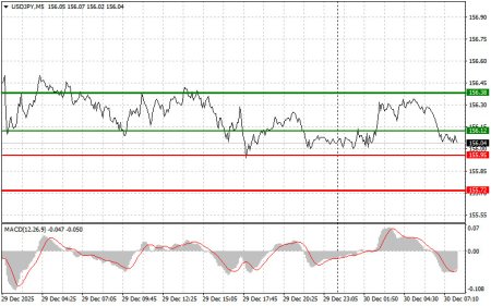 Разбор сделок и советы по торговле японской иенойТест цены 156.31 совпал с моментом, когда индикатор MACD много прошел вниз от нулевой отметки, что ограничивало нисходящий потенциал пары. Второй тест цены 156.13 привел к реализации сценария №2 на покупку доллара, но до крупного роста дело так и не дошло.Вчерашние заявления Трампа в адрес Пауэлла не привели к дестабилизации ситуации на валютном рынке. Вероятно, это обусловлено тем, что правовая сторона вопроса об отставке остается неоднозначной, и рыночные игроки оценивают шансы ее реализации как минимальные. Инвесторы могли также учитывать, что Федеральная резервная система, несмотря на оказываемое властями давление, обладает определённой долей автономности, закреплённой законодательно. И хоть любые попытки политического влияния на деятельность центрального банка могут вызвать негативную реакцию не только у рыночных игроков, но и у общественности в целом, вчера этого не произошло.Учитывая отсутствие важных данных по Японии и США, скорей всего, до конца года, пара останется в рамках канала, в котором находится с середины прошлой недели.Что касается внутридневной стратегии, то больше буду опираться на реализацию сценариев №1 №2.Сценарии на покупкуСценарий №1: покупать USD/JPY сегодня планирую при достижении точки входа в районе 156.12 (зеленая линия на графике) с целью роста к уровню 156.38 (более толстая зеленая линия на графике). В районе 156.37 собираюсь выходить из покупок и открывать продажи в обратную сторону (расчет на движение в 30-35 пунктов в обратную сторону от уровня). К покупкам пары лучше всего возвращаться на коррекциях и серьезных просадках USD/JPY. Важно! Перед покупкой, убедитесь в том, что индикатор MACD находится выше нулевой отметки и только начинает свой рост от нее.Сценарий №2: покупать USD/JPY сегодня также планирую в случае двух подряд тестов цены 155.95 в момент, когда индикатор MACD будет находиться в области перепроданности. Это ограничит нисходящий потенциал пары и приведет к обратному развороту рынка вверх. Можно ожидать рост к противоположным уровням 156.12 и 156.38.Сценарии на продажу Сценарий №1: продавать USD/JPY сегодня планирую лишь после обновления уровня 155.95 (красная линия на графике), что приведет к быстрому снижению пары. Ключевой целью продавцов будет уровень 155.72, где собираюсь выходить из продаж, а также открывать сразу покупки в обратную сторону (расчет на движение в 20-25 пунктов в обратную сторону от уровня). Продавать лучше, как можно выше. Важно! Перед продажей, убедитесь в том, что индикатор MACD находится ниже нулевой отметки и только начинает свое снижение от нее. Сценарий №2: продавать USD/JPY сегодня также планирую в случае двух подряд тестов цены 156.12 в момент, когда индикатор MACD будет находиться в области перекупленности. Это ограничит восходящий потенциал пары и приведет к обратному развороту рынка вниз. Можно ожидать снижения к противоположному уровню 155.95 и 155.72.Что на графике: Тонкая зеленая линия – цена входа, по которой можно покупать торговый инструмент. Толстая зеленая линия – предположительная цена, где можно расставлять Take profit или самостоятельно фиксировать прибыли, так как выше этого уровня дальнейший рост маловероятен. Тонка красная линия – цена входа, по которой можно продавать торговый инструмент. Толстая красная линия – предположительная цена, где можно 