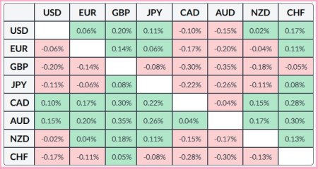 Ближайшие сутки, по всей видимости, пройдут в рамках бокового диапазона, пока рынок не получит новых ориентиров со стороны данных из США или комментариев представителей ФРС. Среднесрочное направление NZD/USD остаётся зависимым от поведения доллара — в случае стабилизации внешнего фона и снижения геополитических рисков возможен постепенный возврат пары к уровням выше круглого 0,5800.В таблице ниже отражена динамика изменения курса новозеландского доллара по отношению к ключевым мировым валютам за сегодняшний день. Наибольшее укрепление новозеландец продемонстрировал в паре с британским фунтом.Материал предоставлен компанией InstaForex - www.instaforex.com