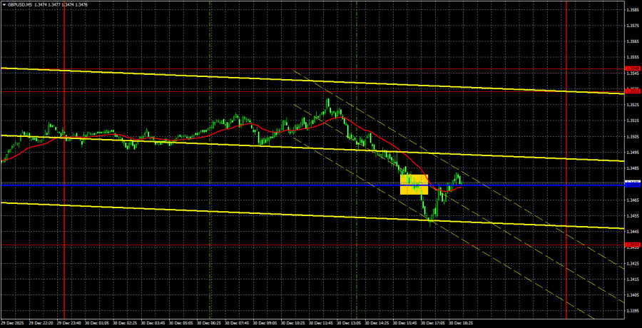 Анализ GBP/USD 5М. Валютная пара GBP/USD в понедельник продолжала двигаться с минимальной