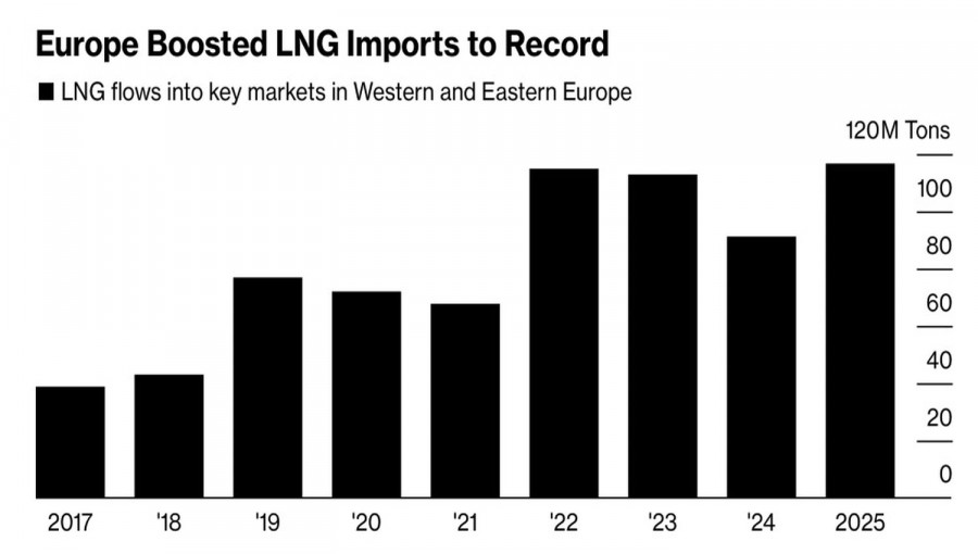 Динамика EuroStoxx 600Евро вырос на более чем 13% с начала года по отношению к доллару США. И не только потому, что ФРС продолжает снижать ставки, а ЕЦБ поставил точку в цикле монетарной экспансии. Возвращение Дональда Трампа к власти обернулось оттепелью в отношениях Соединенных Штатов и России. Это увеличило вероятность прекращения вооруженного конфликта на Украине и взвинтило спрос на валюты восточноевропейских государств. Шутка ли сказать, что в TOP-8 лучших исполнителей 2025 среди трех десятков отслеживаемых Bloomberg валют оказались семь представителей Старого Света: российский рубль, венгерский форинт, шведская и чешская кроны, евро, польский злотый и швейцарский франк. Компанию разбавил главный победитель торговых войн – мексиканский песо. Если в 2022-2023 Европа стонала от энергетического кризиса, то в 2025 адаптировалась к новым условиям. Запасы газа остаются низкими, однако цены падают на ожиданиях рекордно высоких поставок СПГ в Старый Свет. Точно так же как Россия сумела обойти западные санкции, он приноровился к существенному сокращению импорта энергоносителей с Востока. Динамика поставок СПГ в ЕвропуПоддержку EUR/USD оказывает потенциальный разгон экономики еврозоны благодаря фискальным стимулам Германии и увеличению расходов ЕС на оборону. Соответствующие законопроекты были приняты еще весной, однако эффект от их внедрения ожидается в 2026. От того, сможет ли американская экономика составить конкуренцию европейской, будет зависеть судьба основной валютной пары. Я бы не стал считать, что из-за охлаждения рынка труда Соединенные Штаты катятся в пропасть. Пока Германия наращивала инвестиции в инфраструктуру, США увеличивали капитальные вложения в технологии искусственного интеллекта. По оценкам опережающего индикатора от ФРБ Атланты, их ВВП в четвертом квартале вырастет на 3%. Впечатляющая динамика индикатора в апреле-сентябре стала катализатором отскока индекса USD из области минимальных отметок за 3,5 года. Почему бы не случиться возвращению американской исключительности? А это уже совсем другая история для доллара и всего Forex.Технически на дневном графике EUR/USD имеет место уход котировок ниже справедливой стоимости на 1,175. Этот уровень выступает в роли ключевого сопротивления. Открытые от него шорты следует удерживать и периодически наращивать. Материал предоставлен компанией InstaForex - www.instaforex.com