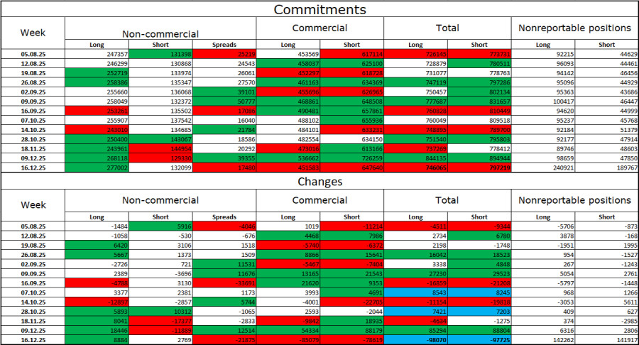 В течение последней отчетной недели профессиональные игроки открыли 8884 Long-контракта и 2769 контрактов Short. Настроение группы «Non-commercial» остается «бычьим» благодаря Дональду Трампу и его политике, и только усиливается с течением времени. Общее количество контрактов Long, сосредоточенных на руках спекулянтов, теперь составляет 277 тысяч, а контрактов Short – 132 тысячи. Это более, чем двукратное преимущество быков. Тридцать три недели подряд крупные игроки избавлялись от Short-позиций и наращивали Long. Затем начался «шатдаун», а сейчас мы видим ту же самую картину: быки продолжают наращивать Long-позиции. Политика Дональда Трампа остается наиболее весомым фактором для трейдеров, так как вызывает множество проблем, которые будут иметь долгосрочный и структурный характер для Америки. Например, ухудшение состояния рынка труда. Трейдеры опасаются потери независимости ФРС в 2026 году под давлением Трампа и на фоне ухода в отставку Джерома Пауэлла в мае. Календарь новостей для США и Евросоюза: 2 января календарь экономических событий не содержит в себе ни одной записи. Влияние информационного фона на настроение рынка в пятницу будет отсутствовать. Прогноз по EUR/USD и советы трейдерам: Продажи пары были возможны при отбое котировок от зоны 1,1795–1,1802 на часовом графике с целью 1,1718. Цель была достигнута в пятницу. Закрытие под уровнем 1,1718 позволит открывать новые сделки на продажу с целью 1,1656. Сделки на покупку можно было открывать при отбое от уровня 1,1718 с целью 1,1795. Сегодня эти сделки можно держать открытыми. Сетки уровней Фибоначчи построены по 1,1392–1,1919 на часовом графике и по 1,1066–1,1829 на 4-часовом.Материал предоставлен компанией InstaForex - www.instaforex.com