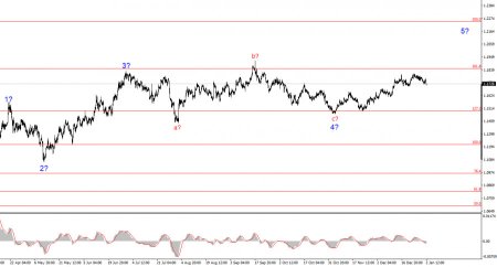 Волновая разметка 4-часового графика для инструмента EUR/USD имеет вполне понятный, хоть и довольно сложный вид в последние месяцы. Об отмене повышательного участка тренда, который берет свое начало в январе прошлого года, речи не идет, но волновая структура, начиная с 1 июля 2025 года, приняла сложный и протяженный вид. На мой взгляд, инструмент завершил построение коррекционной волны 4, которая приняла очень нестандартный вид. Внутри этой волны мы наблюдали исключительно коррекционные структуры, поэтому сомнений в коррекционном характере этой волны не возникает никаких. На мой взгляд, построение повышательного участка тренда не завершено, а его цели разбросаны вплоть до 25-й фигуры. Серия волн a-b-c-d-e выглядит завершенно, следовательно, я в ближайшие недели ожидаю построения нового повышательного набора волн. Мы увидели предполагаемые волны 1 и 2, а сейчас инструмент находится в стадии построения волны 3 или с, которая приняла пятиволновой вид и, следовательно, завершена. В ближайшие дни можно ожидать снижения котировок, что мы и наблюдаем.