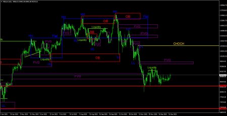 Торговые рекомендации по Биткоину(Bitcoin) на 2 января по системе ICT.