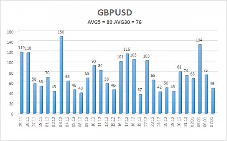 Валютная пара GBP/USD в среду продолжала торговаться достаточно спокойно, как для запланированного макроэкономического фона. Напомним, что отчетов по инфляции, безработице и рынку труда публикуется достаточно много. К примеру, к инфляционным отчетам можно отнести индекс цен производителей, базовую инфляцию, основную инфляцию, индекс цен расходов на личное потребление. К отчетам по безработице можно отнести саму безработицу и заявки на пособия по безработице, которые публикуются каждую неделю. К отчетам по рынку труда относятся отчет JOLTs по открытым вакансиям, отчет ADP по количеству работников в частном секторе, отчет NonFarm Payrolls по изменению количества занятых в несельскохозяйственном секторе. И большая часть вышеперечисленных отчетов имеет локальный статус. Поясним, что мы имеем ввиду. Об инфляции в США можно судить только по индексу потребительских цен. Все остальные отчеты – его производные. О безработице можно судить только по безработице. Среди отчетов по рынку труда наибольшей точностью и актуальностью обладает NonFarm Payrolls. Ни для кого не секрет, что отчет ADP достаточно неточный, не учитывает некоторые сферы занятости американских граждан. Отчет JOLTs – это отчет по открытым вакансиям, но никак не по изменению уровня трудоустройства американского населения. К тому же он публикуется с двухмесячной задержкой. Таким образом, выводы можно делать только по NonFarm Payrolls, уровню безработицы и индексу потребительских цен. Первые два будут опубликованы в пятницу, последний – на следующей неделе. Напомним, что внутри комитета FOMC назрел весьма формальный конфликт мнений. Почему «формальный»? Потому что за постоянное снижение ключевой ставки выступают лишь три члена Комитета: Стивен Мирран, Мишель Боуман и Кристофер Уоллер. Все они так или иначе связаны с Дональдом Трампом, который уже целый год требует от ФедРезерва смягчения монетарной политики. Остальные чиновники ФРС придерживаются взвешенного подхода и не забывают про оба мандата: ценовую стабильность и полную занятость. Поэтому девятеро представителей комитета FOMC голосуют по ставке в зависимости от макроэкономических данных. А мнение «троицы Трампа» мы бы предложили не принимать во внимание. «Открытых голубей» в составе ФРС пока недостаточно для того, чтобы они влияли на процесс голосования. Таким образом, с нашей точки зрения никакого конфликта интересов нет. Джером Пауэлл объявил в декабре, что ФРС требуется пауза, поэтому, скорее всего, параметры монетарной политики останутся без изменений в январе. Тем не менее, отчеты по рынку труда, безработице и инфляции остаются чрезвычайно важными, так как позволят рынку сформировать мнение относительно дальнейших изменений в политике. А рынок любит формировать собственное мнение, чтобы затем отработать его авансом и получить максимальную прибыль. Британский фунт сохраняет отличные перспективы дальнейшего роста и по техническим факторам, и по фундаментальным. Средняя волатильность пары GBP/USD за последние 5 торговых дней составляет 80 пунктов. Для пары фунт/доллар это значение является «средним». В четверг, 8 января, таким образом, мы ожидаем движения внутри диапазона, ограниченного уровнями 1,3393 и 1,3553. Старший канал линейной регрессии развернулся вверх, что указывает на восстановление тренда. Индикатор CCI шесть раз заходил в обла