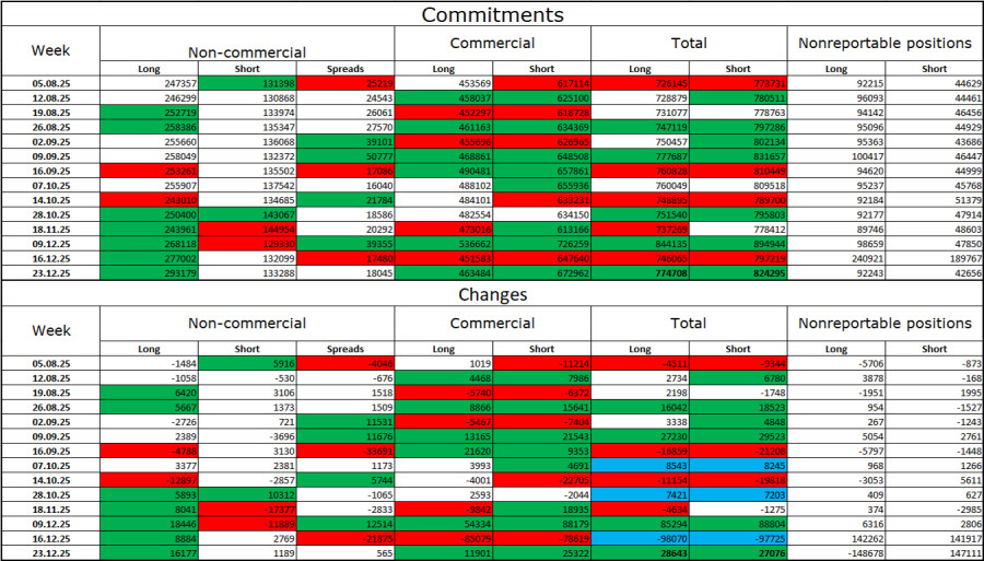 В течение последней отчетной недели профессиональные игроки открыли 16177 Long-контрактов и 1189 контрактов Short. Настроение группы «Non-commercial» остается «бычьим» благодаря Дональду Трампу и его политике, и только усиливается с течением времени. Общее количество контрактов Long, сосредоточенных на руках спекулянтов, теперь составляет 293 тысячи, а контрактов Short – 133 тысячи. Это более, чем двукратное преимущество быков. Тридцать три недели подряд крупные игроки избавлялись от Short-позиций и наращивали Long. Затем начался «шатдаун», а сейчас мы видим ту же самую картину: профессиональные трейдеры продолжают наращивать Long-позиции. Политика Дональда Трампа остается наиболее весомым фактором для трейдеров, так как вызывает множество проблем, которые будут иметь долгосрочный и структурный характер для Америки. Например, ухудшение состояния рынка труда. Трейдеры опасаются потери независимости ФРС в 2026 году под давлением Трампа и на фоне ухода в отставку Джерома Пауэлла в мае. Календарь новостей для США и Евросоюза: Евросоюз – Уровень безработицы (10-00 UTC). США – Изменение числа первичных заявок на пособия по безработице (13-30 UTC). 8 января календарь экономических событий содержит в себе всего две записи, обе – не самые важные. Влияние информационного фона на настроение рынка в четверг может быть крайне слабым или отсутствовать. Прогноз по EUR/USD и советы трейдерам: Продажи пары были возможны при отбое котировок от уровня 1,1731 на часовом графике с целью 1,1686. Цель была достигнута. Сегодня в продажах можно оставаться с целями 1,1645–1,1648 и 1,1607–1,1612. Покупки станут возможными при отбое от одной bo двух целевых зон на часовом графике с целями 1,1686 и 1,1731. Сетки уровней Фибоначчи построены по 1,1492–1,1805 на часовом графике и по 1,1066–1,1829 на 4-часовом.Материал предоставлен компанией InstaForex - www.instaforex.com