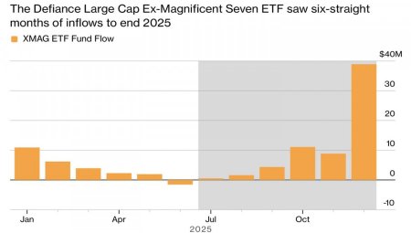 Крахи рынка акций похожи на землетрясения. Они редки, и их невозможно предсказать. При этом люди волей-неволей прислушиваются к оракулам, утверждающим, что чувствуют толчки. Проведенные Elm Wealth и Йельским университетом опросы экспертов выдают 30-31%-ю вероятность обвала S&P 500 на 30% и более в течение следующих 12 месяцев. Судя по показаниям срочного рынка, это слишком высокая цифра. Деривативы оценивают шансы существенного проседания S&P 500 в 2026 в 8%. TS Lombard согласен с ними и выдает цифры в 8-10%. Компания утверждает, что крахи в среднем случаются один раз в 10-12 лет. Последний имел место в 2020 во время пандемии. Можно не волноваться? На самом деле ротация, или сокращение удельного веса технологических компаний в портфелях и увеличение доли чувствительных к состоянию экономики бумаг, – не однодневный процесс. Для него требуются месяцы. В течение этого периода концентрация S&P 500 останется высокой, поэтому проблемы той или иной компании Великолепной семерки способна привести к серьезным колебаниям всего широкого фондового индекса. Динамика притоков капитала в ETF на несвязанные с Великолепной семеркой акции Ситуация до боли напоминает кризис доткомов, когда горстка интернет-компаний не смогла обеспечить адекватную прибыли на вложенные деньги. История повторяется. Не повторится ли она в 2026?