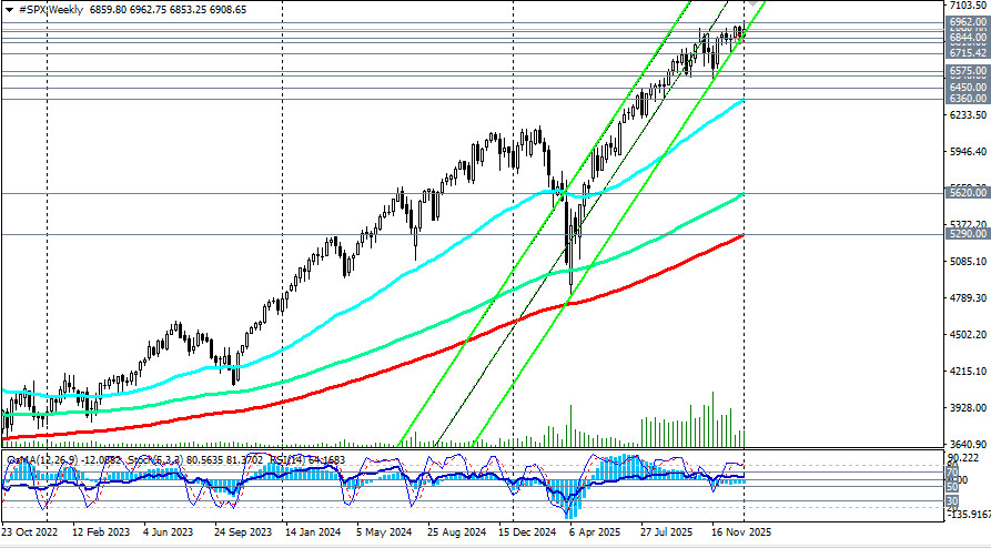 Рынок вступил в фазу ожидания: несмотря на позитив в секторе услуг, сигналы со стороны занятости и вакансий указывают на замедление рынка труда. Это сочетание охлаждает аппетит к риску и поддерживает доллар, в то же время не давая ему возможности для более сильного роста, отметили мы в нашем сегодняшнем фундаментальном анализе и обзоре «Доллар vs S&P500: в режиме ожидания». В то же время американский индекс широкого рынка S&P500 (SPX в торговом терминале) откатился от вчерашнего и рекордного максимума 6962.00 к важному краткосрочному уровню поддержки 6898.00 (ЕМА200 на 1-часовом графике), также демонстрируя осторожность инвесторов накануне публикации NFP. Тем не менее, несмотря на эту коррекцию, сохраняется устойчивая позитивная динамика S&P500, который двигается в зоне глобального бычьего рынка и выше ключевых уровней поддержки 6450.00 (ЕМА200 на дневном графике), 5290.00 (ЕМА200 на недельном графике). Ввиду этого коррекционные откаты предоставляют покупателям дополнительные возможности для наращивания позиций или входа в рынок по более выгодным ценам. Поэтому уже при текущей ситуации снижения к краткосрочному уровню поддержки 6898.00 возможны покупки фьючерсов S&P500. Еще более выгодными стали бы покупки от важных уровней поддержки 6844.00 (ЕМА200 на 4-часовом графике), 6810.00 (ЕМА50 на дневном графике), 6800.00 («круглый» уровень). Пробой сегодняшнего максимума 6926.00 также может стать сигналом для наращивания длинных позиций, а пробой рекордного максимума 6962.00, достигнутого накануне, - подтверждающим сигналом. В альтернативном сценарии и в случае пробоя уровней поддержки 6810.00, 6800.00 коррекция продолжится в сторону важных уровней поддержки 6575.00 (ЕМА144 на дневном графике), 6540.00, 6505.00 (минимумы декабря). В самом негативном сценарии пробой ключевых уровней поддержки 6450.00 (ЕМА200 на дневном графике), 6360.00 (ЕМА50 на недельном графике) выведет цену в зону среднесрочного медвежьего рынка, сделав преимущественными короткие позиции в среднесрочном периоде и повысив риски падения к ключевому уровню поддержки 5290.00 (ЕМА200 на недельном графике), отделяющему долгосрочный бычий рынок от медвежьего. Но пока что для реализации такого сценария оснований нет. Даже несмотря на глобальные геополитические риски, американская экономика - по-прежнему крупнейшая мировая экономика, доллар остается ведущей резервной валютой, а ФРС не исключает дополнительного смягчения своей политики, что является еще более комфортным условием для инвесторов и американского фондового рынка. По-прежнему сохраняется глобальный восходящий тренд, а предпочтительными остаются длинные позиции. открыть торговый счет + зарегистрироваться в системе копирования сигналов + инвестировать в ПАММ-системеМатериал предоставлен компанией InstaForex - www.instaforex.com