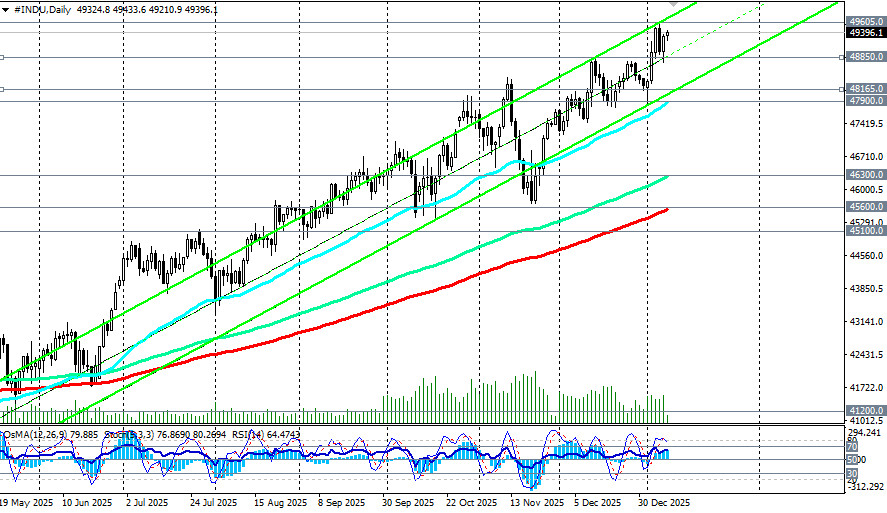 *) см. также: Торговые индикаторы InstaForex по DJIA (INDU)[i][/i] Итак! Согласно отчету, опубликованному в пятницу Бюро Статистики Труда США (BLS), количество новых рабочих мест вне сельского хозяйства (Non-Farm Payrolls, NFP) выросло всего на 50 тысяч в декабре, что значительно меньше ожидаемых рынком 60 тысяч. Этот показатель стал 2-м месяцем подряд замедления темпов роста занятости, учитывая пересмотр данных за ноябрь с первоначально заявленных 64 тысяч до 56 тысяч. Общая картина оказалась немного позитивнее благодаря снижению уровня безработицы до 4,4%, самого низкого показателя с марта прошлого года, против ноябрьских 4,6%. Вместе с тем, доля экономически активного населения незначительно сократилась до 62,4%. Заработная плата также продемонстрировала рост: годовой прирост среднечасового заработка составил 3,8%, что превысило предыдущий показатель в 3,6%. При этом важно отметить, что два предыдущих месяца были подвергнуты значительным пересмотрам. Так, занятость в октябре была снижена сразу на 68 тысяч позиций, а в ноябре - на дополнительные 8 тысяч. В ответ на эту публикацию индекс доллара США USDX откатился от внутридневных максимумов, хотя и сохранял дневной рост, на момент публикации данной статьи, около +0,15%, торгуясь вблизи отметки 98.90. При этом, основные американские фондовые индексы S&P500 (см. наш недавний обзор «Доллар vs S&P500: в режиме ожидания»), DJIA, NASDAQ100 ускорили свой рост, устремившись в сторону своих недавних рекордов. Таким образом, несмотря на умеренно разочаровывающие цифры занятости, рынок продолжил сохранять оптимизм относительно перспектив американской экономики, подчеркивая важность широкого контекста экономических показателей. Среди же 3-х основных американских фондовых индексов выделяется сегодня, пожалуй, индекс DJIA (Dow Jones Industrial Average) на фоне сочетания нескольких факторов, которые одновременно усилили спрос на акции «старой экономики» — банков, промышленности и энергетики. Главный драйвер роста - уверенность рынка в скором новом снижении процентных ставок ФРС. Несмотря на текущий рост доходностей гособлигаций США, инвесторы все активнее делают ставки на снижение ставок в ближайшие месяцы. Это увеличивает привлекательность акций, особенно дивидендных и циклических компаний, входящих в DJIA. Для Dow Jones снижение ставок особенно позитивно, так как в индексе многие компании, чувствительны к стоимости заимствований. В то же время продолжается переток капитала из акций технологических компаний, входящих в Nasdaq, в более устойчивые и недооценённые бумаги DJIA. Сегодня рынок также отыгрывает фактор «нет плохих новостей», в том числе - без новых геополитических шоков, без жёстких заявлений ФРС. В таких условиях инвесторы готовы покупать. Техническая картина Учитывая долгосрочный и глобальный бычий тренд DJIA и всего американского фондового рынка, преимущественными остаются длинные позиции. Важная зона поддержки 48165.0 – 47900.0, при приближении к которой в случае коррекционного снижения, возможно рассмотрение новых длинных позиций и вход в рынок по более выгодным ценам. Впрочем, пробой сегодняшнего максимума 49430.0 тоже станет сигналом для новых покупок, подтверждающим сохранение бычьего тренда и преимущество длинных позиций. Заключение Американская экономика и фондовые рынки находятся в периоде повышенной турбулентности, что требует от участников рын