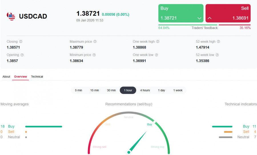 *) см. также: Торговые индикаторы InstaForex по USD/CAD[/i]Доллар: в конце важной недели[/b]». Между тем одной из немногих валют, которые сегодня пытаются сопротивляться американскому доллару, выделяется доллар канадский, получающий также поддержку от роста цен на нефть поле известных событий вокруг Венесуэлы и публикации данных по запасам нефти в США. Накануне Американский институт нефти (API) сообщил, что снижение запасов составило 2,800 млн баррелей, а по данным Управления по энергетической информации Министерства энергетики США (EIA), снижение составило –3,832 млн баррелей нефти в хранилищах США. Сегодня (также в 13:30 GMT) Статистическое управление Канады представит свежие данные о состоянии рынка труда за декабрь 2025 года. По предварительным оценкам, число занятых сократилось на 5 тыс. человек, тогда как в ноябре наблюдался значительный рост (+53,6 тысячи). Ожидается также, что уровень безработицы вырос до 6,6%, превысив показатель ноября (6,5%), средняя почасовая оплата увеличилась на 4% (в годовом выражении). В то же время, несмотря на умеренный рост зарплат, инфляционное давление остается низким, позволяя Банку Канады сохранить ставку неизменной. Техническая картина USD/CAD остается торговаться в зоне долгосрочного бычьего рынка - выше ключевых уровней поддержки 1.3730 (ЕМА144 на недельном графике), 1.3625 (ЕМА200 на недельном графике). Публикация же сегодняшних данных по США и Канаде может оказать решающее влияние на краткосрочную динамику пары USD/CAD. В зависимости от результатов отчётов Минтруда США и Статистического управления Канады возможен либо отскок от зоны сопротивления 1.3880 - 1.3900, либо продолжение долгосрочного бычьего тренда USD/CAD. Если это предположение окажется верным, то в случае сильных данных из США и слабых из Канады, USD/CAD может вновь получить аргументы для возобновления восходящей динамики. В то же время, американский доллар остается под давлением, что накладывает отпечаток на динамику пары USD/CAD (подробнее см. в USD/CAD: торговые сценарии на 09.01.2026). Вывод Негативные признаки на рынке труда Канады указывают на возможное усиление стимулирующих мер Банка Канады, что негативно сказывается на стоимости национальной валюты. Ожидается, что динамика рынка труда продолжит оказывать давление на политику Банка Канады. Экономисты считают, что очередное повышение ключевой ставки возможно лишь в 2027 году, если ситуация существенно улучшится. Восстановление цен на нефть обеспечивает частичную защиту канадскому доллару, однако геополитический риск и ограничения экспорта венесуэльской нефти создают дополнительную нестабильность. Инвесторам рекомендуется оставаться настороже, учитывая непредсказуемость развития ситуации на мировом рынке энергоресурсов и политические события, способные повлиять на экономические показатели Канады. Особенно осторожными в принятии торговых решений необходимо быть сегодня в преддверии публикации данных с рынка труда США и Канады. Заключение Таким образом, среднесрочные прогнозы для пары USD/CAD остаются умеренно позитивными, подчеркивая важность тщательного анализа фундаментальных факторов при принятии инвестиционных решений относительно и канадского, и американского долларов.*) см. также наш