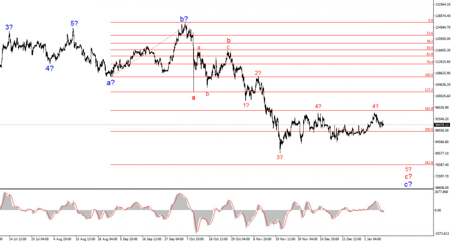 Биткоин предположительно завершил построение коррекционной волны 4, которая приняла пятиволновой