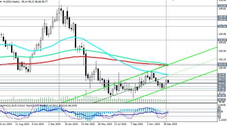 Доллар снижается в начале новой недели. Доходность американских гособлигаций также снижается в понедельник, дополнительно оказывая давление на доллар. Предыдущая неделя характеризовалась укреплением доллара благодаря росту инфляции и сохранению напряженности вокруг возможных решений Федеральной резервной системы. Недавние статистические данные продемонстрировали рост занятости всего на 50 тысяч человек против ожидаемых 66 тысяч, хотя безработица неожиданно снизилась до 4,4%. Средняя почасовая зарплата увеличилась быстрее прогнозов, достигнув отметки 3,8% годовых. Несмотря на признаки охлаждения рынка труда, аналитики считают, что ситуация далеко не столь драматична, как первоначально полагали. Кроме того, опубликованный также в пятницу предварительный индекс потребительских настроений (от университета Мичигана) в январе вырос до 54,0 с 52,9 в декабре, превысив прогноз в 53,5. Таким образом, представленные на минувшей неделе данные поддерживают более оптимистичный экономический прогноз и снижают необходимость в экстренных снижениях процентной ставки. В декабре, как известно, ФРС снизила процентную ставку на 0,25%. Однако в протоколе данного заседания были выявлены серьезные разногласия членов комитета по вопросам кредитно-денежной политики. После публикаций макро статистики оценки относительно дальнейших шагов монетарных властей США были скорректированы. Экономисты теперь рассчитывают, что ФРС снизит стоимость заимствований на 25 базисных пунктов в июне и сентябре, а не в марте и июне, как ожидалось ранее. Кстати, на текущий момент инструмент FedWatch CME Group указывает на 95% вероятность паузы в январе. Между тем, особое внимание привлекает уголовное преследование председателя ФРС Джерома Пауэлла, связанное с реконструкцией здания центрального банка стоимостью 2,5 млрд долларов. Сам Пауэлл назвал обвинения политическими манипуляциями, направленными на ограничение независимости регулятора и изменение монетарной политики. Возможная смена руководства ФРС способна вызвать резкое падение позиций доллара. Техническая картина Протестировав в пятницу сильный уровень сопротивления 99.13 (ЕМА144 на дневном графике), сегодня и в начале американской торговой сессии цена на фьючерсы индекса доллара USDX снизилась к уровню поддержки 98.72 (ЕМА50 на дневном графике). Однако, учитывая, что фьючерсы USDX все же сохраняют восходящую динамику в краткосрочном периоде, можно рассчитывать на отбой от зоны поддержки 98.72 – 98.60 (ЕМА200 на 1-часовом графике) и возобновление восходящей коррекции цены. Если это предположение окажется верным, то более удачный ретест сопротивления 99.13 с его пробоем может создать предпосылки для роста цены в сторону ключевого уровня сопротивления 99.60 (ЕМА200 на дневном графике), отделяющем среднесрочный медвежий рынок доллара от бычьего. Его же пробой и пробой уровня сопротивления 99.90 (ЕМА50 на дневном графике) подтвердит возрождение среднесрочного бычьего тренда USDX с перспективой роста в сторону верхней границы восходящего канала на недельном графике USDX, проходящей также через ключевой долгосрочный уровень сопротивления 101.45 (ЕМА144 на недельном графике). В негативном для доллара сценарии пробой уровня поддержки 98.60 полностью вернет цену в зону медвежьего рынка с перспективой падения к стратегическому уровню поддержки 96.80, отд