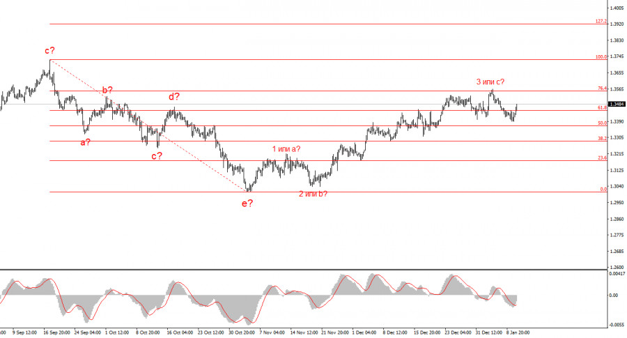 Исходя из проведенного анализа EUR/USD, я делаю вывод, что инструмент продолжает построение повышательного участка тренда. Политика Дональда Трампа и денежно-кредитная политика ФРС остаются весомыми факторами падения американской валюты в долгосрочном плане. Цели текущего участка тренда могут простираться вплоть до 25-й фигуры. Текущий восходящий набор волн может быть завершен, поэтому в ближайшее время инструмент ожидает снижение. Участок тренда, берущий свое начало 5 ноября, еще может принять пятиволновой вид, но сейчас в любом случае коррекционная волна.Волновая картина по GBP/USD: