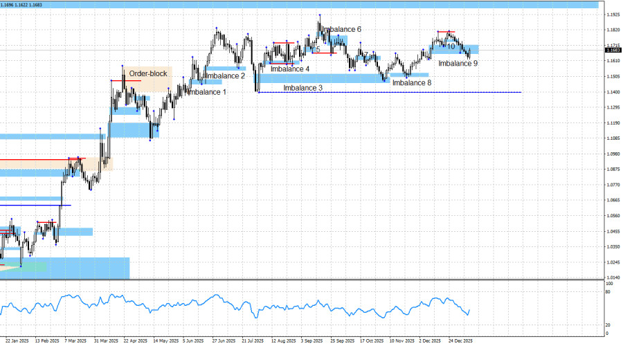 FxSignal 12-01-2026, 19:05 14 Аналитика, прогнозы валютного рынкаПара EUR/USD одиннадцать дней подряд находилась в падении. В рамках этого падения был отработан с запасом «бычий» имбаланс 9. Инвалидации этого паттерна на текущий момент не произошло, а отработки зон интереса могут быть разными. Таким образом, я продолжаю считать, что «бычий» тренд сохраняется. На мой взгляд, быки могли перейти в новое наступление еще на прошлой неделе, когда большинство экономических данных из США вновь принесло одно разочарование. Однако медведи с упорством, которому мог бы позавидовать любой козерог, продолжали гнуть свою линию. Ситуацию разрешил Дональд Трамп в понедельник ночью. Против Джерома Пауэлла было начато уголовное расследование, а трейдеры прекрасно понимают, кого за это нужно благодарить. Сам Пауэлл сообщил, что иметь в Америке собственное мнение становится опасно, а его преследование имеет лишь одну причину – нежелание снижать процентную ставку до уровней, которых требует президент США. Доллар тут же начал падение, а я продолжаю ждать «бычьей» реакции на имбаланс 9, пока инвалидация этого паттерна не вынудит сделать вывод об отмене «бычьего» импульса. Инвалидация случится ниже уровня 1,1616. Тренд из-за этого не станет «медвежьим», но на некоторое время инициативой могут завладеть медведи. Графическая картина продолжает сигнализировать о «бычьей» доминации. «Бычий» тренд сохраняется, но в данное время трейдерам нужны новые сигналы. Таковой может быть образован только внутри имбаланса 9, но до сих пор он не образован. В случае появления «медвежьих» паттернов или инвалидации «бычьих», стратегию торговли придется скорректировать. Но на данный момент времени оснований для этого нет. Информационный фон в понедельник фактически отсутствовал, но трейдерам для принятия решения хватило уголовного преследования Пауэлла и последовавших чуть позже объяснений Пауэлла. На мой взгляд, это было весьма предсказуемым продолжением истории, а вывод из нее можно сделать только один – Трамп стремится контролировать всё и всех, в ком или чем заинтересован. Таким образом, ФРС имеет все шансы потерять независимость, а доллар – прекрасную возможность упасть гораздо выше уровня 1,20$ по отношению к евровалюте. Причин у быков для нового наступления имеется в достатке уже месяцев 4-5, и все они сохраняют свою актуальность. Это и «голубиные» (в любом случае) перспективы ДКП FOMC, это и общая политика Дональда Трампа (которая не поменялась за последнее время), это и противостояние США с Китаем (где наступило лишь временное перемирие), это и акции протеста американского народа против Трампа под эгидой «No kings», это и слабость рынка труда, это и не радужные перспективы американской экономики (рецессия), это и «шатдаун» (который длился полтора месяца, но явно не был учтен трейдерами). А теперь это еще и военная агрессия США по отношению к некоторым государствам и уголовное преследование Пауэлла. Таким образом, дальнейший рост пары, на мой взгляд, будет полностью закономерным. В «медвежий» тренд я по-прежнему не верю. Информационный фон по-прежнему крайне сложно интерпретировать в пользу доллара, поэтому я и не пытаюсь это делать. Синяя линия показывает ценовой уровень, ниже которого можно будет считать «бычий» тренд завершенным. До него медведям нужно пройти вниз около 300 пипсо