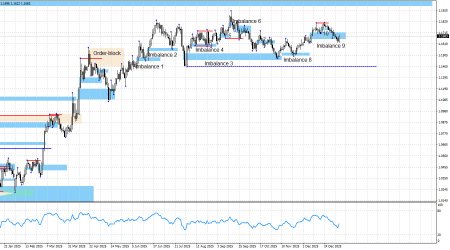 Пара EUR/USD в понедельник выполнила сильное падение на дно имбаланса 9, но к концу дня вернулась