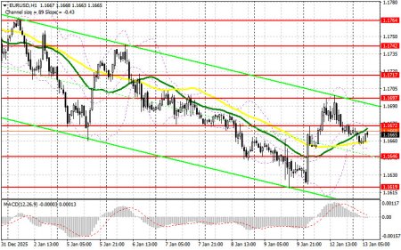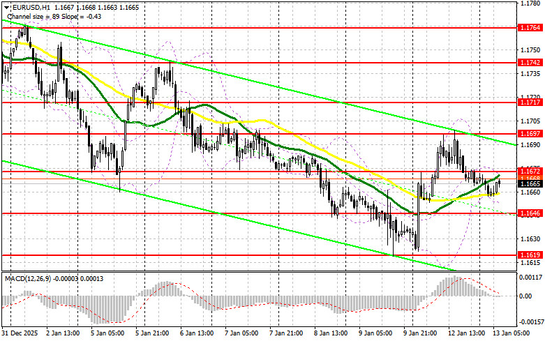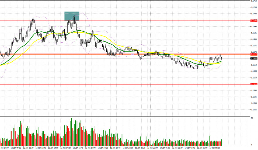 Вчера было образовано несколько точек входа в рынок. Давайте посмотрим на 5-минутный график и разберемся с тем, что там произошло. В своем утреннем прогнозе я обращал внимание на уровень 1.1681 и планировал от него принимать решения по входу в рынок. Рост и формирование ложного пробоя в районе 1.1681 привели к точке входа на продажу евро, но до крупного падения пары дело так и не дошло. Во второй половине дня активные действия продавцов уже в районе 1.1694 вылились в очередную продажу евро, что привело к снижению пары на 30 пунктов.Для открытия длинных позиций по EURUSD требуется:Прежде чем говорить о дальнейших перспективах движения EUR/USD давайте посмотрим, что происходило на фьючерсном рынке и как изменились позиции Commitment of Traders. В COT-отчете (Commitment of Traders) за 6 января наблюдался рост длинных позиций и сокращение коротких. Ожидания паузы в цикле снижения Федеральной резервной системой процентных ставкам не помогает американскому доллару с ростом. Основной причиной являются сложности, с которыми снова начала сталкиваться Федеральная резервная система, и давление, которое на нее оказывается со стороны администрации Трампа. Пока этот вопрос не будет полностью решен, трейдеры будут отдавать предпочтение рисковым активам. В COT-отчете указано, что длинные некоммерческие позиции выросли на 3 515 до уровня 298 253, в то время как короткие некоммерческие позиции сократились на 1 832 до уровня 135 441. В результате спрэд между длинными и короткими позициями вырос на 2 534.Сегодня в первой половине дня нет никакой статистики по еврозоне. Также не запланированы и выступления европейских политиков, так что рынок может остаться на стороне покупателей американского доллара. При небольшом возврате давления на евро первого проявления покупателей ожидаю в районе 1.1646. Лишь формирование там ложного пробоя будет точкой входа в рынок с целью роста к сопротивлению 1.1672, образованному по итогам вчерашнего дня. Прорыв и обратный тест этого диапазона станут подтверждением правильных действий на покупку евро в расчете на более крупный рост пары к 1.1697, что укажет на возврат покупателями инициативы. Самой дальней целью выступит область 1.1717, где буду фиксировать прибыль. При варианте снижения EUR/USD и отсутствия активности в районе 1.1646, давление на пару может вернуться. Продавцы наверняка сумеют дотянуться до более интересного уровня 1.1619. Лишь формирование там ложного пробоя будет подходящим условием на покупку евро. Открывать длинные позиции сразу на отскок будут от 1.1591 с целью восходящей коррекции в 30-35 пунктов внутри дня.Для открытия коротких позиций по EURUSD требуется: Продавцы вчера сделали все возможное, чтобы остановить развитие бычьего рынка по евро, и, кажется, это им удалось. Сегодня основной задачей будет защита сопротивления 1.1672, где проходят средние скользящие. Лишь формирование там ложного пробоя будет поводом для продажи в расчете на снижение к поддержке 1.1646. Прорыв и закрепление ниже этого диапазона, а также обратный тест снизу вверх, станут еще одним подходящим вариантом на открытие коротких позиций с движением в район 1.1619, что вернет медвежий характер рынка. Самой дальней целью выступит область 1.1591, где буду фиксировать прибыль. В случае движения вверх EUR/USD в первой половине дня, а также отсутствия активных действий медведей в районе 1.1672, короткие позиции лучш