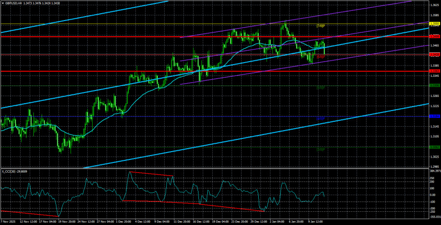 Валютная пара GBP/USD во вторник торговалась достаточно спокойно, а отчет по инфляции продемонстрировал пресное значение 2,7%. Как и месяцем ранее. Во времена первой каденции Трампа в Белом доме, мы регулярно использовали фразу «театр абсурда». Все, что происходит сейчас в США, очень похоже на какой-то иронично-фантастический роман. Это еще не Оруэлл, но уже близко к нему. Джером Пауэлл открыто заявляет о том, что на него оказывает давление президент США. Такого раньше не случалось ни разу, ибо председатель ФРС всегда предпочитал игнорировать оскорбления и критику президента США. Однако, когда к вам приходят с повесткой в суд, молчать становится достаточно тяжело. Напомним, что в прошлом году Трамп решил уволить представителя Монетарного комитета Лизу Кук. Если быть точнее, то Трамп просто написал в собственной социальной сети об увольнении члена Монетарного комитета. И у нас возникает только один вопрос. Почему Трамп таким же способом не разогнал сразу весь Комитет? Это, конечно, шутка, но весьма горькая для Джерома Пауэлла. Американские суды в данное время находятся даже не между двух огней, а между двумя пожарищами. С одной стороны, законодательство США, которое вроде бы должно исполняться в соответствии с тем, что написано в многочисленных законах. С другой стороны, Дональд Трамп – президент США, который, как правило, либо требует решения, противоречащего этим самым законами, либо же сам выступает фигурантом очередного разбирательства за явное превышение полномочий или нарушение закона. И суды вместо принятия очевидного и законного вердикта, просто затягивают время, что оказывается на руку Трампу. Два американских суда уже признали торговые пошлины Трампа незаконными, и что? Они были отменены? Верховный суд США должен был вынести вердикт по торговым пошлинам еще 9 ноября прошлого года! На дворе – середина января, близится новый «шатдаун», а Верховный суд оказывается не может понять, имел ли право Трамп вводить пошлины против половины государств мира, если в соответствующем законе нет ни одного упоминания пошлин. Абсурд и каламбур. К сожалению, Джером Пауэлл, которому остается доработать на должности главы ФРС всего несколько месяцев, тоже может попасть в театр абсурда и сыграть в одном из актов одну из главных ролей. Мы, конечно, не знаем, как составлялась смета на реконструкцию зданий ФРС, не знаем, что говорил Пауэлл в Конгрессе США, когда ему задавались вопросы о расходах, но разве все это важно? Иногда у нас складывается ощущение, что речь идет не о реконструкции государственного учреждения, а о ремонте частного дома самого Пауэлла за государственные средства. Возникает и еще один вопрос – а почему именно Пауэлл виноват в предполагаемом перерасходе бюджетных средств? Насколько мы знаем Пауэлл – председатель ФРС, а не прораб. Самое интересное заключается в том, что увольнение Пауэлла или даже его посадка за решетку ничего не изменит в вопросе влияния Трампа на монетарную политику ФРС. А если/когда изменит, доверие к американскому центробанку, некогда независимому и внушающему доверие во всем мире, упадет к уровням доверия к центробанку Никарагуа. Средняя волатильность пары GBP/USD за последние 5 торговых дней составляет 68 пунктов. Для пары фунт/доллар это значение является «средним». В среду, 14 января, таким образом, мы ожида