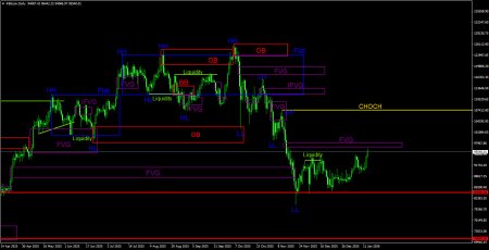 Торговые рекомендации по Биткоину(Bitcoin) на 14 января по системе ICT.