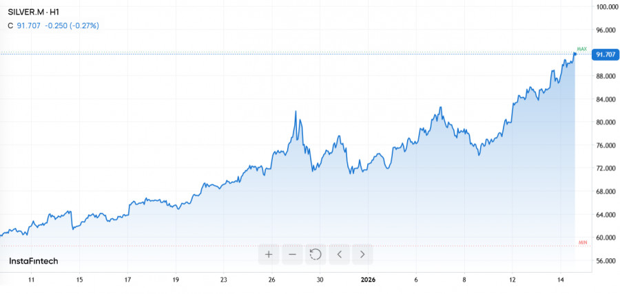 В начале торгов во вторник, 14 января 2026 года, серебро впервые в истории подскочило выше $88 за унцию, продолжая мощное ралли, начавшееся еще в 2025 году. Рост белого металла, подогреваемый геополитической нестабильностью, растущим промышленным спросом и ожиданиями снижения процентных ставок Федеральной резервной системой США, привел к тому, что за первые две недели 2026 года его цена выросла уже более чем на 20%. За весь 2025 год серебро подорожало примерно на 145%, превратившись из традиционного защитного актива в один из самых динамичных инструментов на рынке драгоценных металлов.12 января серебро достигло исторического максимума – выше $88 за унцию, что стало самой высокой ценой за всю историю наблюдений. В последующие торговые сессии металл торговался в узком диапазоне $85–88. В то же время золото также демонстрирует уверенный рост, преодолев отметку в $4600 за унцию. Однако именно серебро показывает значительно более высокую волатильность и темпы роста. Это привело к резкому сокращению соотношения цен золота и серебра с экстремальных 100:1 в начале 2025 года до текущих примерно 57:1, что свидетельствует о возросшей привлекательности серебра не только как убежища, но и как стратегического промышленного ресурса.Основными драйверами роста выступают глобальные геополитические потрясения. Военная интервенция США в Венесуэлу и захват президента Николаса Мадуро в конце 2025 года вызвали новую волну неопределенности на мировых рынках, подтолкнув инвесторов к перераспределению капитала в пользу реальных активов. Дополнительное давление на рынки оказывают продолжающаяся напряженность вокруг Ирана и затяжной конфликт в Восточной Европе.На внутреннем фронте ситуацию усугубляет расследование Министерства юстиции США в отношении руководства Федеральной резервной системы. Председатель ФРС Джером Пауэлл назвал это расследование «предлогом» для оказания давления на центробанк с целью принудительного снижения ставок. Такие события подрывают доверие к доллару как к резервной валюте и усиливают интерес к альтернативным активам. По текущим оценкам рынков, в 2026 году ФРС снизит ключевую ставку как минимум дважды, что делает особенно привлекательными активы, не приносящие процентного дохода, в первую очередь серебро и золото.Рекордный рост серебра обусловлен совокупностью факторов – от глобальных конфликтов до внутренних политических разборок в США. При этом снижение соотношения золото/серебро до 57:1 указывает на перспективу дальнейшего ускорения роста именно серебра, особенно если промышленный спрос продолжит расти на фоне энергоперехода и развития зеленых технологий. Трейдеры, отслеживающие динамику драгоценных металлов, могут извлечь выгоду из текущей волатильности и устойчивого восходящего тренда, используя как прямые позиции по серебру, так и спред-стратегии между золотом и серебром.Учитывая текущую рыночную конъюнктуру, трейдерам стоит рассмотреть открытие позиций на рост серебра или воспользоваться коррекциями внутри диапазона $85 – 88 для входа в длинные позиции с целью на новые исторические максимумы. Кроме того, возможны и краткосрочные сделки на откатах, особенно в условиях высокой волатильности. Важно также учитывать корреляцию с золотом и динамикой доллара США при построении торговых решений.Серебро и золото доступны 