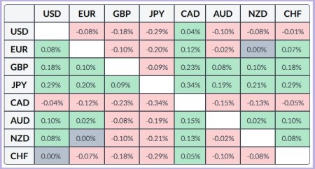 А с технической точки зрения пара торгуется в нисходящем канале. Ближайшей поддержкой является 0,8664, ниже которой пара сможет удержаться на уровне 0,8650 и у 200-дневной SMA. А сопротивлением является 9-дневная ЕМА. Выше которой цены ускорят движение к круглому уровню 0,8700. Но пока осцилляторы на дневном графике отрицательны, быкам о росте говорить рано.В таблице ниже представлена динамика процентного изменения евро. Наибольшее укрепление евро наблюдается против канадского доллара.Материал предоставлен компанией InstaForex - www.instaforex.com
