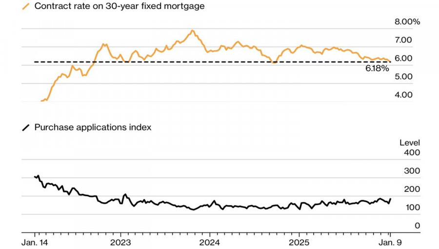 Тем не менее для EUR/USD стоимость ипотечных кредитов важного значения не имеет. Инвесторы обращают внимание на другие ставки – Федрезерва и долгового рынка. При этом на рынке деривативов все больше интереса к теме продления паузы в цикле монетарной экспансии ФРС до конца года. Смещение сроков возобновления ослабления денежно-кредитной политики с марта-апреля на июнь, особенно после статистики по рынку труда США за декабрь, позволяет американскому доллару доминировать на Forex в начале года. Угроза независимости ФРС в виде врученного Джерому Пауэллу Министерством юстиции судебного иска лишь на время испугала «медведей» по EUR/USD. Откат основной валютной пары вверх стал основанием для продаж. У инвесторов появился шаблон, когда эскалация конфликта между Дональдом Трампом и председателем Федрезерва позволяет выкупать провалы по индексу USD. В конечном итоге Центробанк – не театр одного актера. Решения FOMC принимаются коллегиально, и Белому дому придется выпрыгнуть из кожи, чтобы убедить Комитет снизить ставки до 1%. Сомневаюсь, что со временем будет расти спрос на хеджирование рисков вложения денег в американские акции. Их привлекательность падает по мере снижения интереса к технологиям искусственного интеллекта. Высокие ставки делают страховки дорогими.