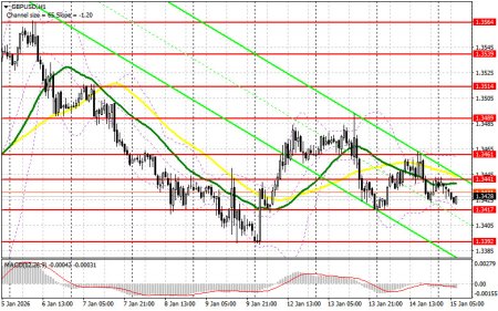 Вчера было образовано несколько точек входа в рынок. Давайте посмотрим на 5-минутный график и разберемся с тем, что там произошло. В своем утреннем прогнозе я обращал внимание на уровень 1.3452 и планировал от него принимать решения по входу в рынок. Рост и формирование ложного пробоя в районе 1.3452 привели к точке входа на продажу фунта, что вылилось в падение пары примерно на 15 пунктов. Во второй половине дня история с уровнем 1.3452 повторилась. В этот раз пара снизилась более чем на 30 пунктов.Для открытия длинных позиций по GBP/USD требуется:Данные по инфляции в США и хорошему росту розничных продаж сохранили спрос на доллар, что привело к возврату давления на британский фунт. Однако до обновления недельного минимума дело так и не дошло, что, пока, сохраняет шансы на восходящую коррекцию. Сегодняшний день станет определяющим. Впереди нас ждут данные по изменению объема ВВП Великобритании, изменению объема промышленного производства и балансу внешней торговли товарами. В случае третьего подряд месяца слабой статистики по ВВП, фунт очень быстро вернется к падению. В таком случае рассчитывать быкам можно будет лишь на поддержку 1.3417. Лишь формирование там ложного пробоя станет хорошим вариантом для открытия длинных позиций с целью роста к сопротивлению 1.3441, образованному по итогам вчерашнего дня. Прорыв и обратный тест сверху-вниз этого диапазона вернут шансы на укрепление GBP/USD, что приведет к сносу стоп-приказов продавцов и подходящей точке входа в длинные позиции с возможностью выхода к 1.3461, где ожидаю уже более активного проявления медведей. Самой дальней целью будет область 1.3489, где собираюсь фиксировать прибыль. При сценарии снижения GBP/USD и отсутствия активности со стороны покупателей на 1.3417, давление на пару только увеличится, что приведет к движению в район следующей поддержки 1.3392. Лишь формирование там ложного пробоя будет подходящим условием на открытие длинных позиций. Покупать GBP/USD сразу на отскок собираюсь от минимума 1.3370 с целью коррекции в 30-35 пунктов внутри дня.Для открытия коротких позиций по GBP/USD требуется:Продавцы пытаются полностью забрать контроль над рынком, но пока это дается им с большим трудом. Только слабые данные по экономике Великобритании позволят им полностью завладеть инициативой. В случае небольшой коррекции пары в первой половине дня лишь формирование ложного пробоя в районе 1.3441 будет поводом для продажи GBP/USD с целью снижения в район поддержки 1.3417. Прорыв и обратный тест снизу вверх этого диапазона нанесут более крупный удар по позициям покупателей, приведя к сносу стоп-приказов и открыв путь к 1.3392. Самой дальней целью выступит область 1.3370, где буду фиксировать прибыль. Тест этого уровня приведет к выстраиванию нового медвежьего тренда. При варианте роста GBP/USD и отсутствия активности на 1.3441, где проходят средние скользящие, играющие на стороне медведей, покупатели получат шанс на коррекцию в район 1.3461. Открывать там короткие позиции собираюсь также лишь на ложном пробое. При отсутствии движения вниз и там я буду продавать GBP/USD сразу на отскок от 1.3489, но лишь в расчете на коррекцию пары вниз на 30-35 пунктов внутри дня.Рекомендую для ознакомления:В COT-отчете (Commitment of Traders) за 6 января наблюдался рост длинных и коротких позиций. Вероятность снижения процентных ставок в США довольно сильно ослабла после по