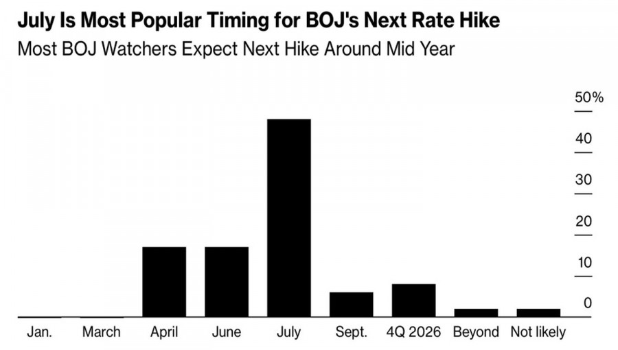 Взлет USD/JPY был обусловлен намерением Санаэ Такаити упрочить собственную власть. Рейтинги первой в истории женщины премьер-министра высоки. Они не опускаются ниже 70%, а иногда доходят до 80%. В таких условиях ждать намеченных на июль выборов в нижнюю палату парламента не имеет смысла. Можно его распустить и назначить голосование уже в феврале. В итоге Либерально-демократическая партия может получить больше мест, коалиции для принятия решений не потребуется. Это означает более свободную фискальную политику. Дополнительные стимулы и увеличение расходов бюджета будут подогревать инфляцию и ослаблять иену в рамках так называемой Такаити-торговли. Ни то, ни другое не устраивает премьер-министра. Бороться со спекулянтами по USD/JPY можно при помощи интервенций или повышения ставки овернайт. Последний вариант не так хорош, как может показаться. Он приводит к увеличению стоимости обслуживания колоссальных долгов Японии. Тем не менее инсайд Bloomberg утверждает, что Банк Японии все чаще рассматривает слабость иены как фактор растущего влияния на инфляцию. Продолжение ралли USD/JPY может заставить его сделать шаг по дороге ужесточения денежно-кредитной политики раньше, чем ожидают рынки. Предполагаемые сроки монетарной рестрикции BoJ