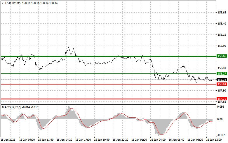 Разбор сделок и советы по торговле японской иенойТест цены 158.18 пришелся на момент, когда индикатор MACD только начинал движение вниз от нулевой отметки, что стало подтверждением правильной точки входа на продажу доллара, но до крупного падения пары дело так и не дошло. Далее очень важне тщательный анализ грядущих экономических релизов, что даст возможность участникам рынка глубже понять обстановку в экономике США. Рост объема промышленного производства в США, как правило, указывает на подъем потребительского интереса, рост количества заказов и, следовательно, благоприятное воздействие на экономику в общем, что поможет доллару на пути роста против японской иены. Выступления представителей FOMC, в частности Мишель Боуман и Филипа Н. Джефферсона, также будут тщательно отслеживаться. Их высказывания относительно экономического климата и дальнейших действий в монетарной политике существенно повлияют на настроения инвесторов и, как следствие, на колебания курса американского доллара. Но следует помнить, что японский регулятор уже неоднократно намекал, что в случае дальнейшего ослабления национальной валюты он готов вмешаться. Это явно будет ограничивать покупки доллара против иены в моменте. Что касается внутридневной стратегии, то больше буду опираться на реализацию сценариев №1 и №2.Сигнал на покупкуСценарий №1: покупать USD/JPY сегодня планирую при достижении точки входа в районе 158.27 (зеленая линия на графике) с целью роста к уровню 158.66 (более толстая зеленая линия на графике). В районе 158.66 буду выходить из покупок и открывать продажи в обратную сторону (расчет на движение в 30-35 пунктов в обратную сторону от уровня). Рассчитывать на рост пары можно в продолжение тренда. Важно! Перед покупкой, убедитесь в том, что индикатор MACD находится выше нулевой отметки и только начинает свой рост от нее.Сценарий №2: покупать USD/JPY сегодня также планирую в случае двух подряд тестов цены 158.04 в момент, когда индикатор MACD будет находиться в области перепроданности. Это ограничит нисходящий потенциал пары и приведет к обратному развороту рынка вверх. Можно ожидать рост к противоположным уровням 158.27 и 158.66.Сигнал на продажу Сценарий №1: продавать USD/JPY сегодня планирую после обновления уровня 158.04 (красная линия на графике), что приведет к быстрому снижению пары. Ключевой целью продавцов будет уровень 157.71, где буду выходить из продаж, а также открывать сразу покупки в обратную сторону (расчет на движение в 20-25 пунктов в обратную сторону от уровня). Давление на пару сегодня вернется в случае мягкой позиции ФРС. Важно! Перед продажей, убедитесь в том, что индикатор MACD находится ниже нулевой отметки и только начинает свое снижение от нее. Сценарий №2: продавать USD/JPY сегодня также планирую в случае двух подряд тестов цены 158.27 в момент, когда индикатор MACD будет находиться в области перекупленности. Это ограничит восходящий потенциал пары и приведет к обратному развороту рынка вниз. Можно ожидать снижения к противоположному уровню 158.04 и 157.71.Что на графике:Тонкая зеленая линия – цена входа, по которой можно покупать торговый инструмент;Толстая зеленая линия – предположительная цена, где можно расставлять Take Profit или самостоятельно фиксировать прибыль, так как выше этого уровня дальнейший рост маловероятен;Тонкая красная линия – цена входа, по которой мож